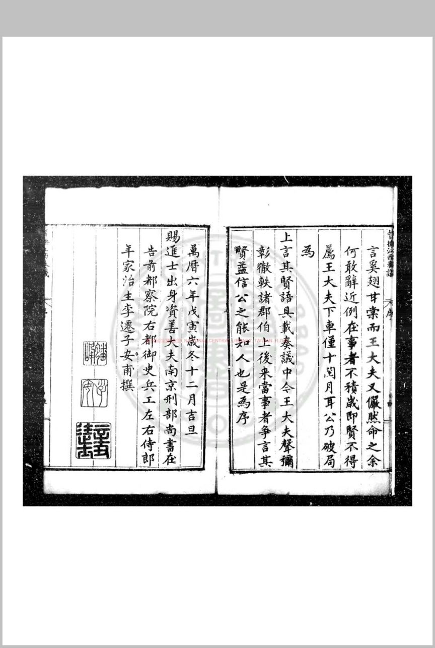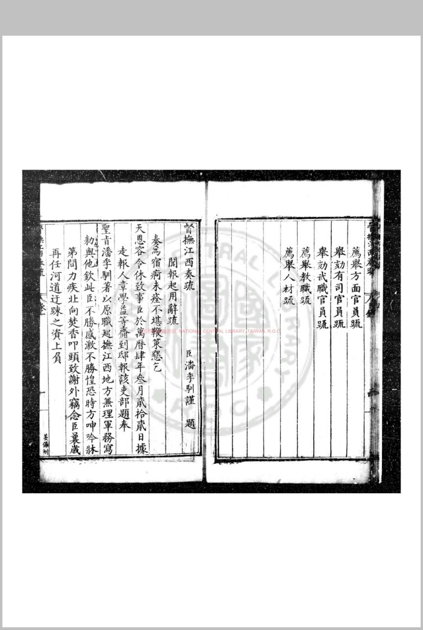 督抚江西奏疏 (明)潘季驯撰 明万历六年(1578)豫章郡守王氏编刊本
