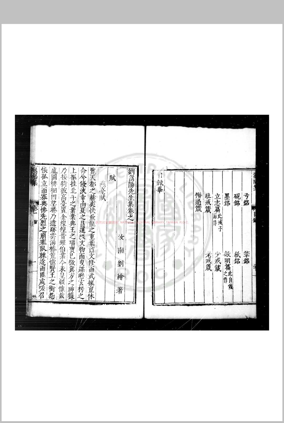 刘蒿阳先生集 (明)刘绘撰 明万历癸酉(元年, 1573)铜梁张佳胤刊本