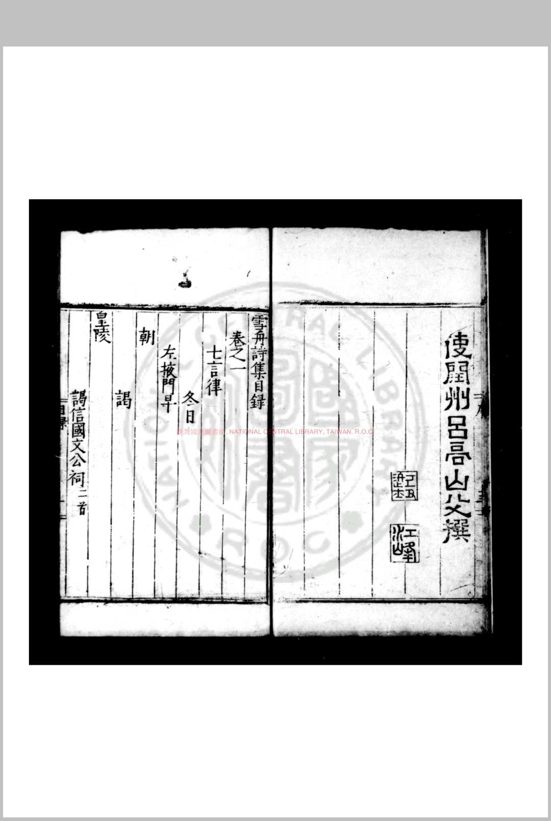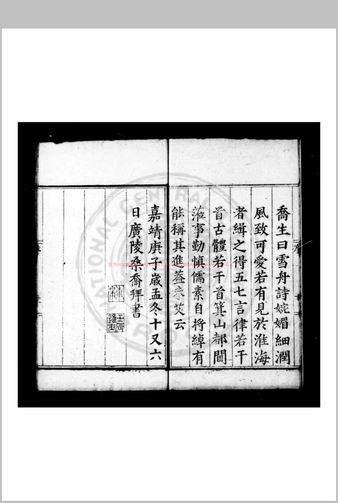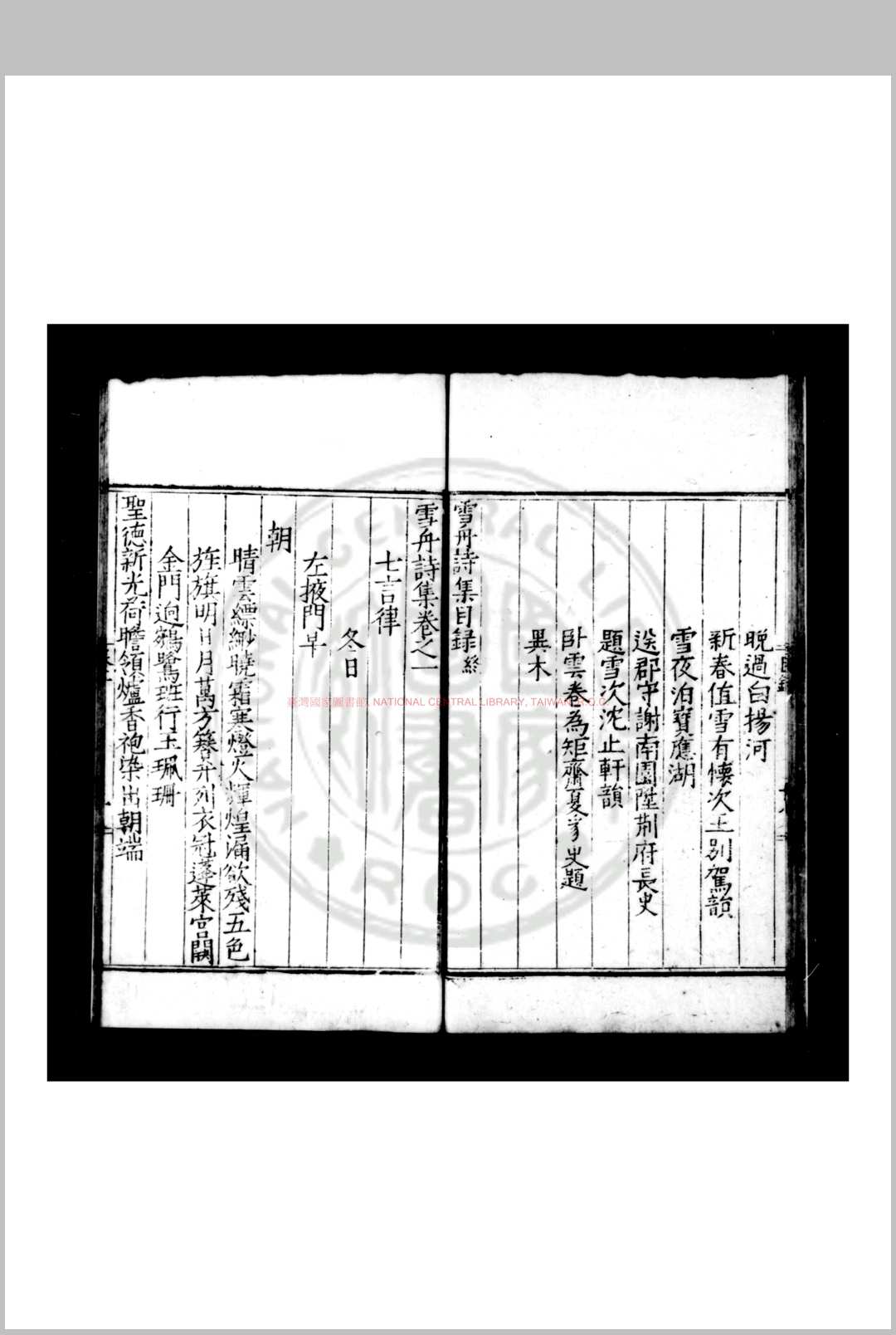 雪舟诗集 (明)贾雪舟撰 明嘉靖间(15221566)维扬贾氏家刊本