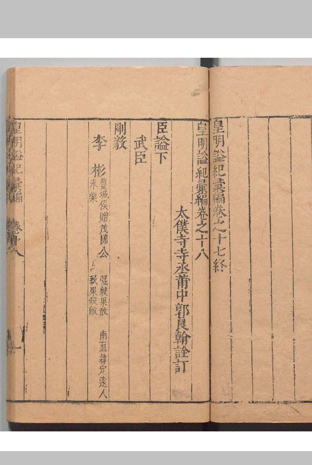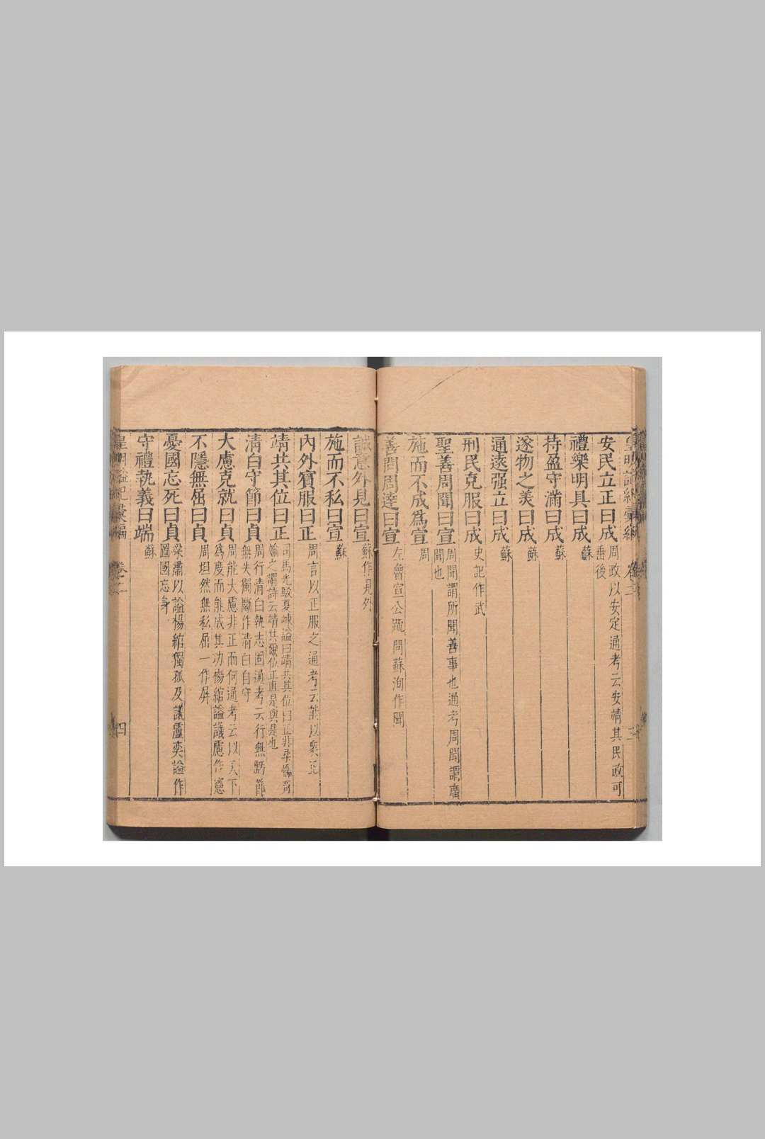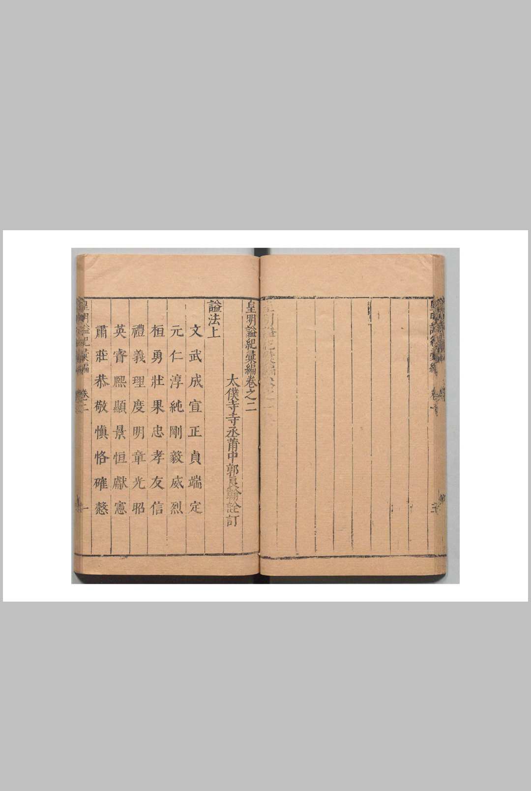 明郭良翰撰。良翰有《周礼古本订注》,已著录。兹编辑有明一代谥法,最为详备。首曰《功令》,凡子目二,曰《会典事例》,曰《近日事例》。次曰《谥法》,无子目。次曰《尊谥》,凡子目九,曰《帝后》,曰《皇妃谥六字》,曰《皇妃谥四字》,曰《皇妃谥二字》,曰《东宫》,曰《公主》,曰《亲王》,曰《郡王》,曰《王妃》,次曰《臣谥》,凡子目九,曰《文臣》,曰《武臣》,曰《异流》,曰《夫人》、《淑人》,曰《追赠前朝臣》,曰《外夷》,曰《近题准谥诸文臣》,曰《议论》,曰《考误》。其“近题准谥”一条,即当代文臣所以不散入各类者,盖即鲍应鼇书所载之二十九人,不予不夺,莫知所定者也。其《议论》一门,则杂采明人诸说,如李东阳以有党谥“文正”,彭韶以孤立谥“惠安”之类,持论颇公。其《考误》一门,以阁籍正野史异同,尤为可据,亦考典故者所宜取证也。