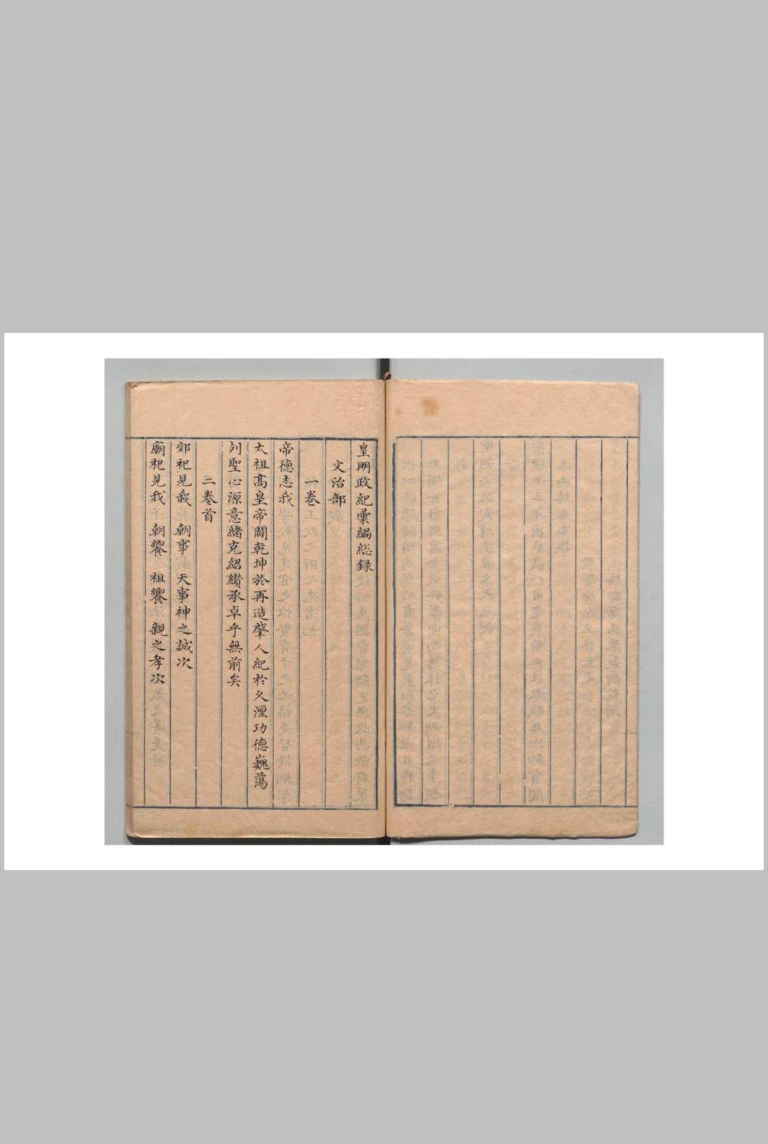 皇明政纪汇编 文治部4卷 武功部4卷 名臣奏疏行实略2卷 林太乙(明)清写本