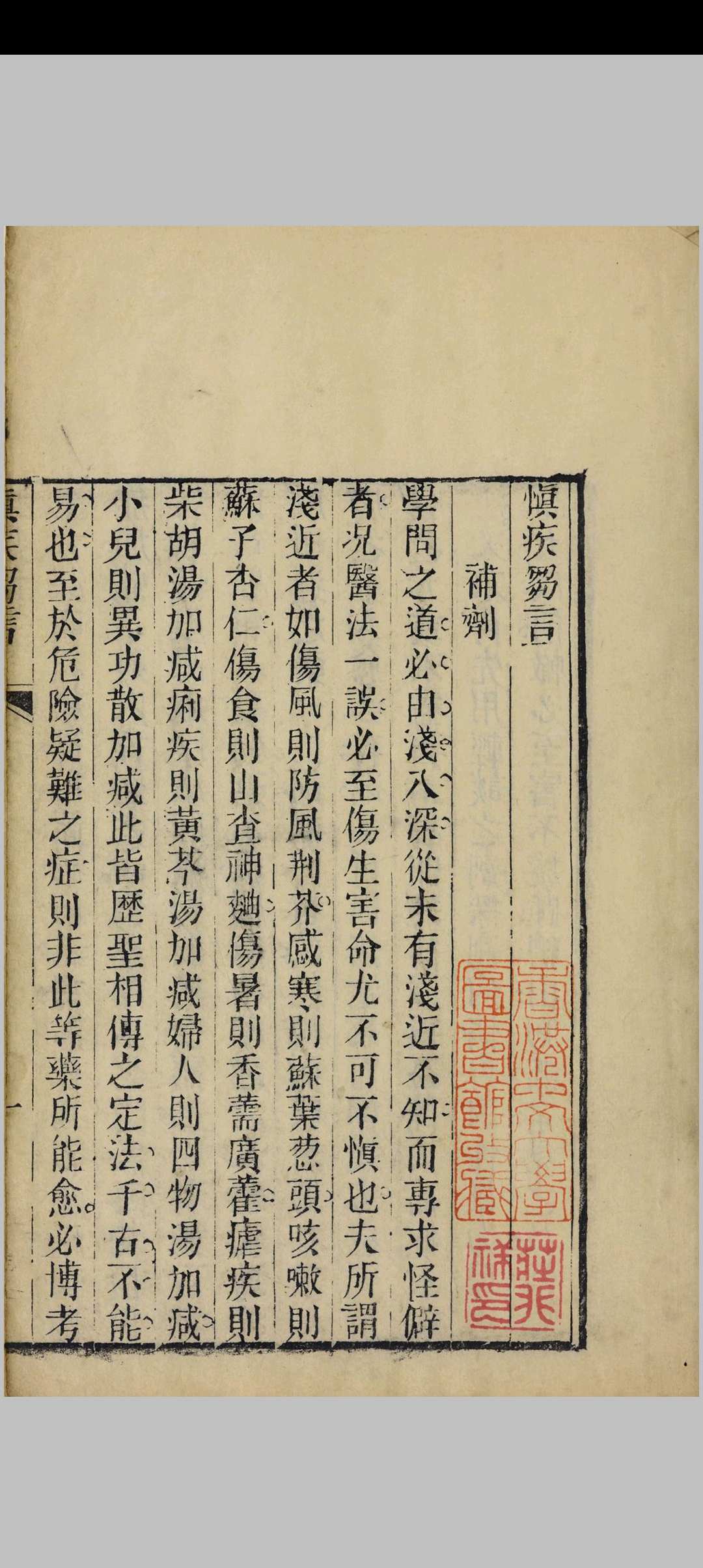 《慎疾刍言》,医论著作。一卷。清.徐大椿撰于1767年。本书着重剖析医界流弊,以期医家谨慎治疾。本书内容有误用补剂、内科杂病误治的论述。还有对不同患者(如老人、妇女、小儿)治疗上应有所区分、以及外科病证治法等方面的论述。简明切要,并无浮泛。此书又有王士雄校刊本。经张鸿补辑,改名《医砭》,编入《潜斋医学丛书》中。现存初刻本等二十余种清刻本。