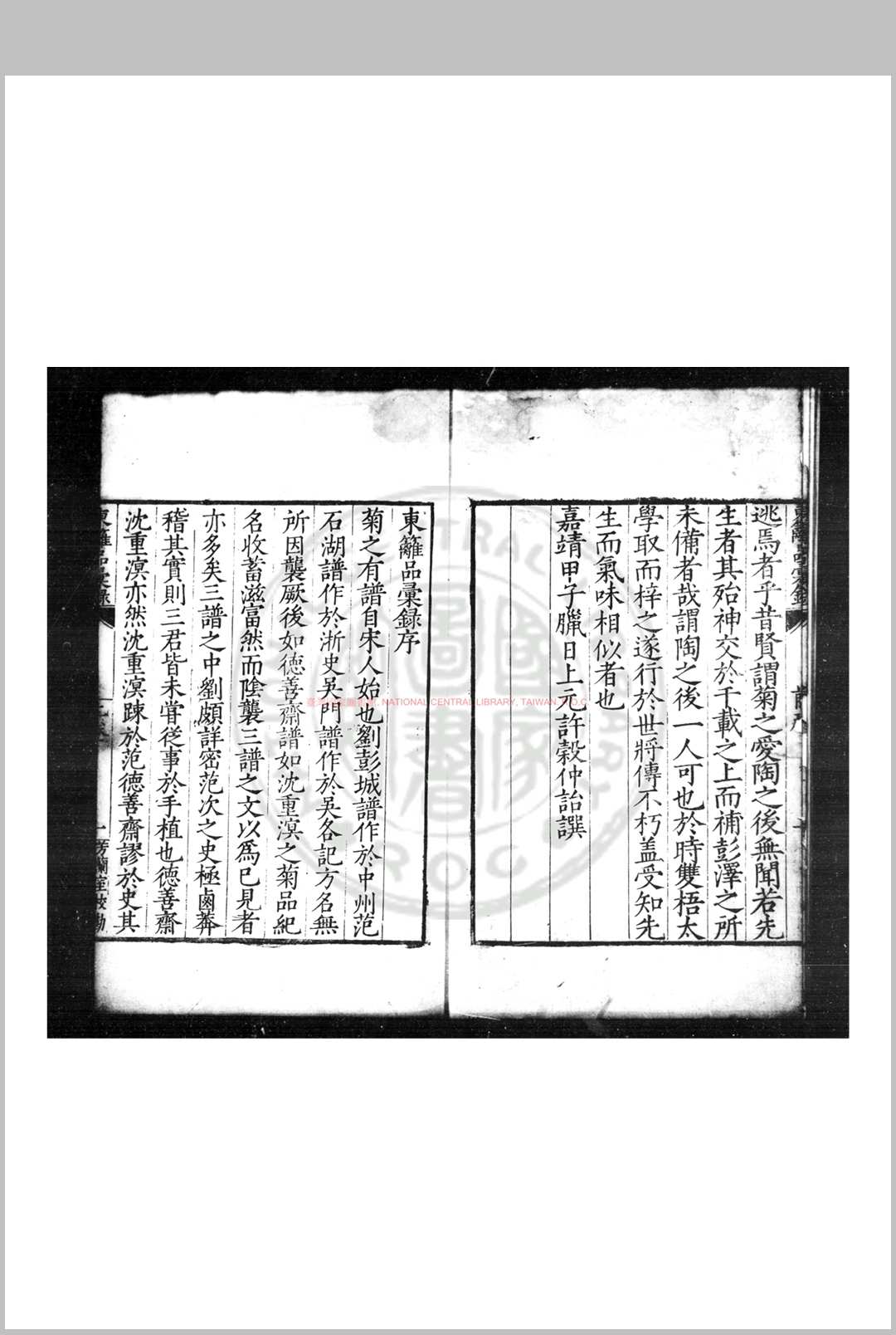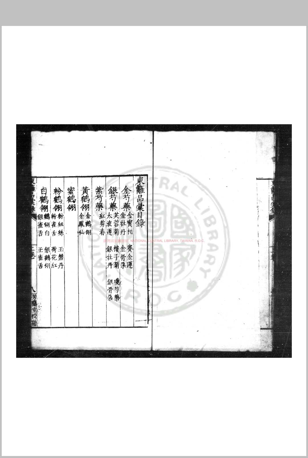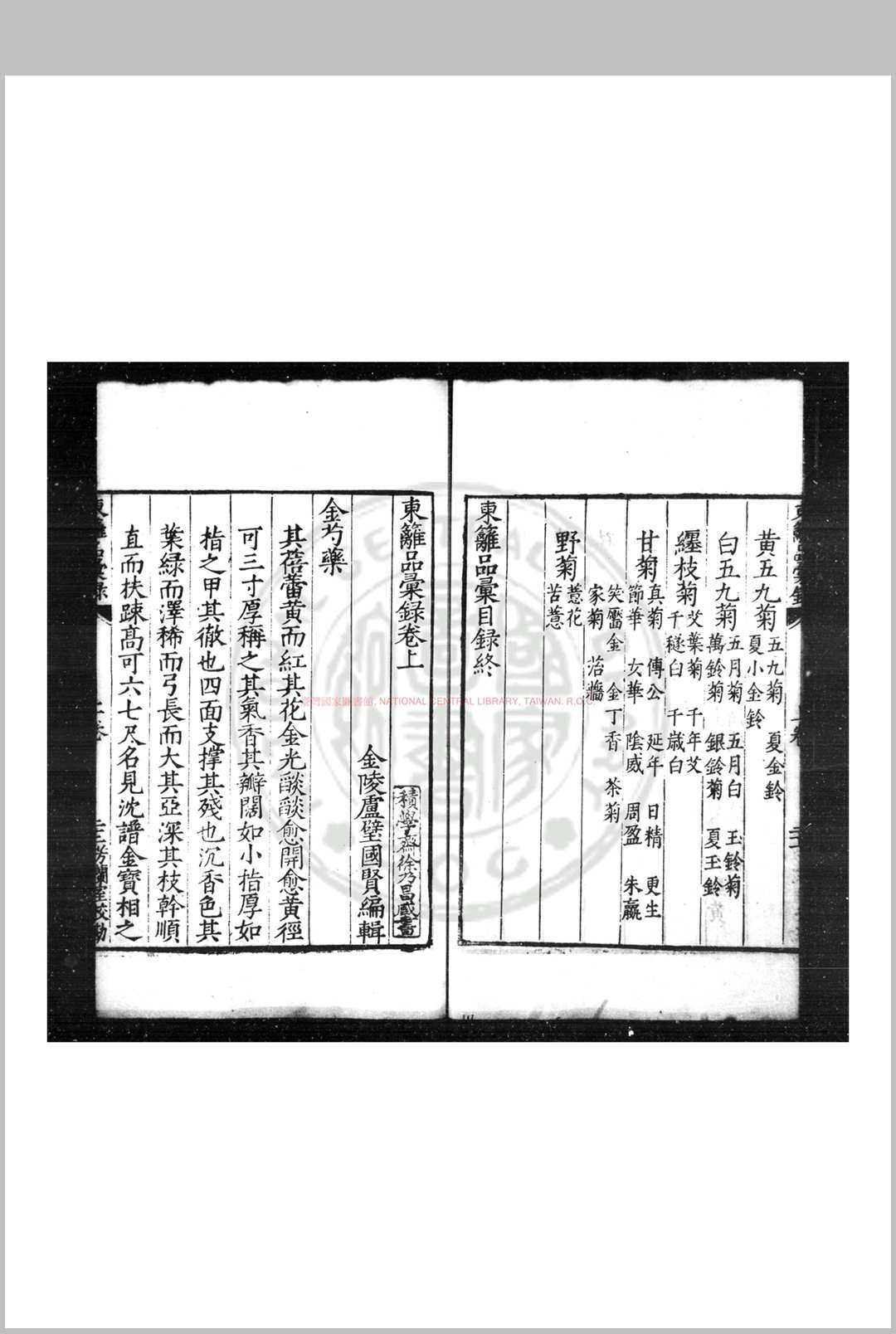 东篱品汇录 (明)卢璧撰 明嘉靖癸亥(四十二年)芳兰室刊本