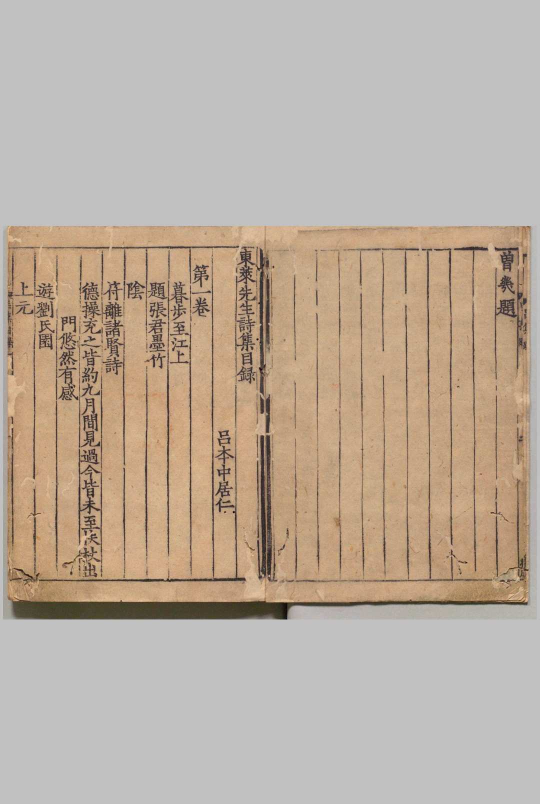 东莱先生诗集 20卷 吕本中(宋)沉公雅 宋刊本 ,乾道间