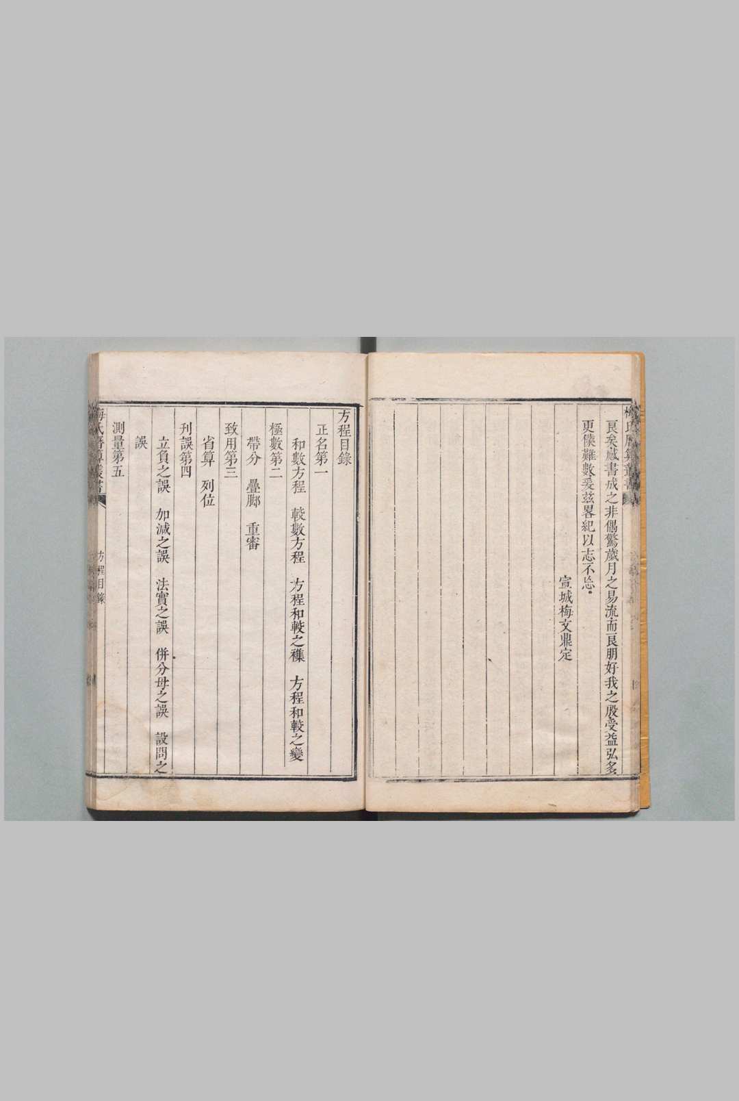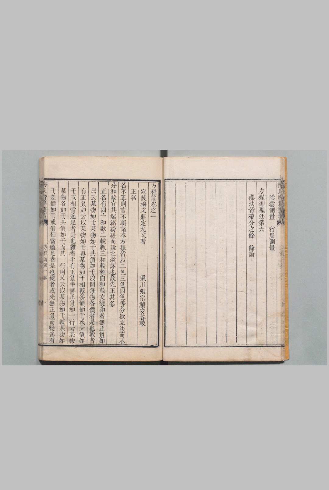 梅氏历算丛书 方程论 6卷 少广拾遗1卷 交食蒙求订补 2卷 附1卷 交会管见 1卷春秋以来冬至考 1卷 梅文鼎 张宗祯 清乾隆元年 , 鹏翮堂