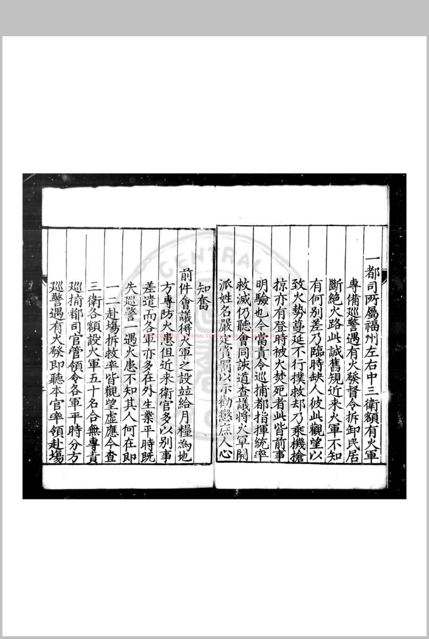 福建省城防御火患事宜 (明)庞尚鹏撰 明万历五年(1577)福建官刊本