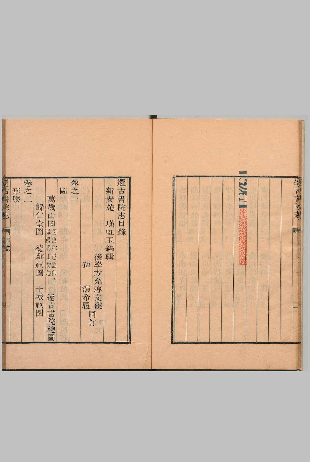 还古书院,位于安徽休宁。明万历十年(1592)知县祝世禄、邑人进士邵庶始建于万安山,二十二年告成,为明代中后期阳明学派举行讲会之中心。邵庶《还古书院碑记》云:“嘉靖中,南海、东越、西江言学六七君子结辙而入新都,过海阳,递式阙里,六邑之士多就之者。祝公,雅兴性命之学,四方士人,跋涉山川,而辏境内,讲学盟会,于是书院之议起。”自万历二十五年(1597)至崇祯十二年(1639)共集新安六邑(歙县、休宁、黟县、绩溪、祁门、婺源)之士讲会七次。每会十天,邹守益、王艮、钱德洪、王畿等曾来院讲学及参与讲会。
