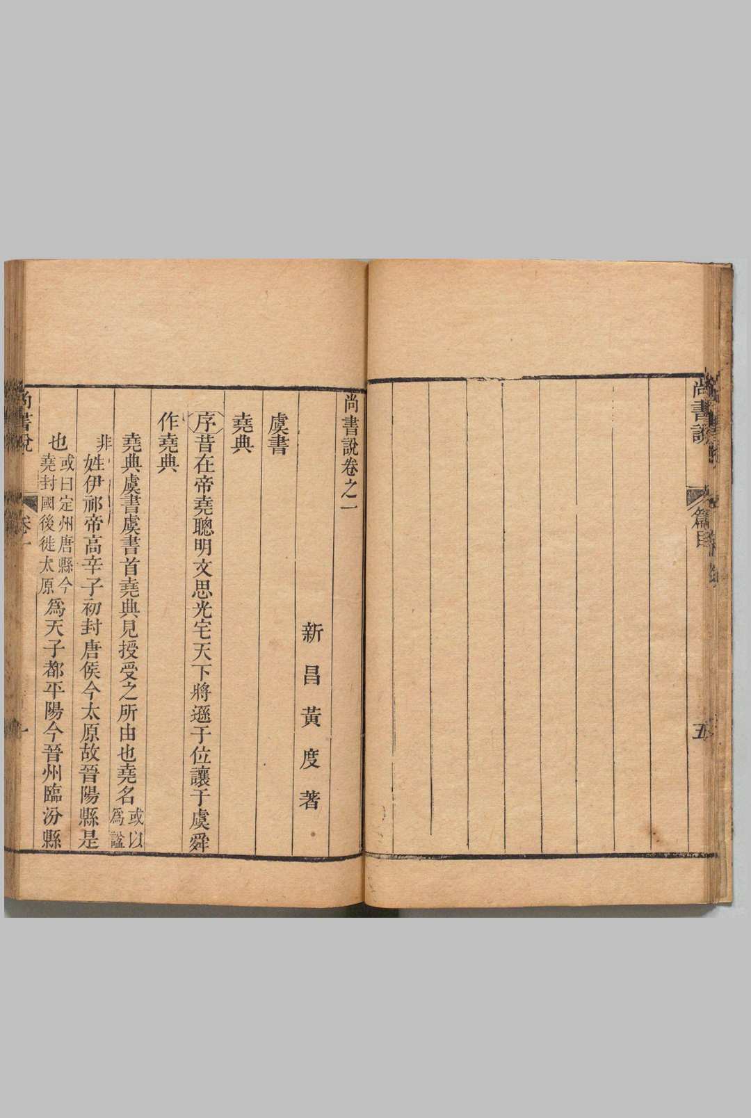四库提要 宋黄度撰。度字文叔,号遂初,新昌人。绍兴间登进士,宁宗时为御史。尝劾韩侂胄误国,又劾内侍杨舜卿、陈源,又奏吴曦必反,以正直称。累官礼部尚书、龙图阁学士。谥宣献。事迹具《宋史》本传。陈振孙《书录解题》称其笃学穷经,老而不倦。晚年制阃江淮,著述不辍。时得新意,往往晨夜叩书塾,为友朋道之。其勤挚如此。所注有《书说》、《诗说》、《周礼说》。《诗》与《周礼》说今佚,惟《书说》仅存。此本乃明吕光洵与唐顺之所校。前有光洵《序》,述度始末甚详。当度之时,吴棫《书裨传》始出,未为世所深信,尚不知孔安国《传》出於梅赜托名。故度作是编,其训诂一以孔《传》为主。然梅赜当东晋之初,去古未远,先儒旧义,往往而存。注《尚书》者要於诸家为最古,度依据其文,究胜后来之臆解。至於推论三代兴衰治乱之由,与夫人心、道心、精一、执中、安止、惟几、绥猷、协一、建中、建极诸义,亦皆深切著明。以义理谈经者固有取焉。