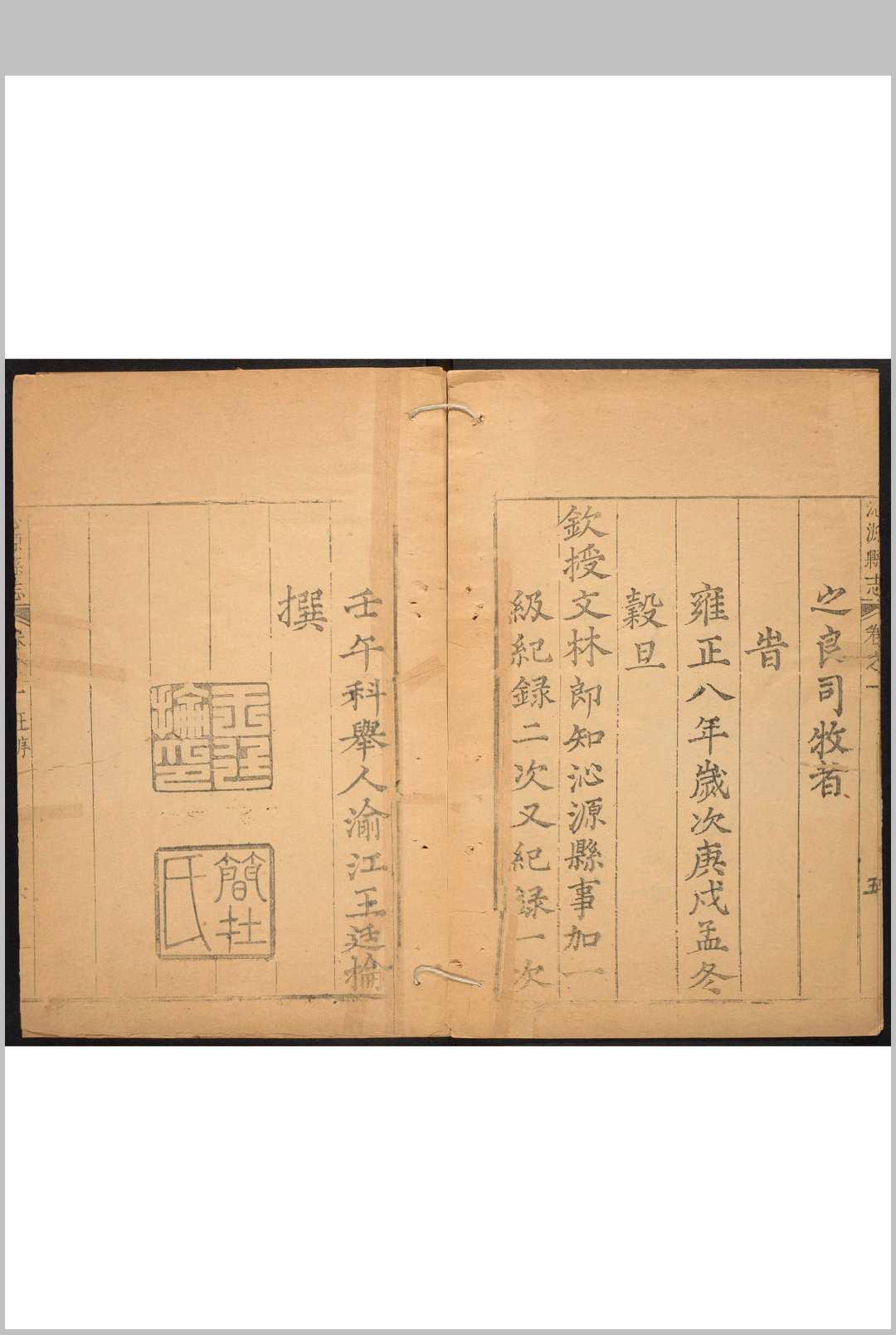 沁源县志 10卷 王廷抡续纂 韩瑛纂修.雍正9年 [1731] (乾隆间 [i.e. between 1736 and 1795] 剜修重印)
