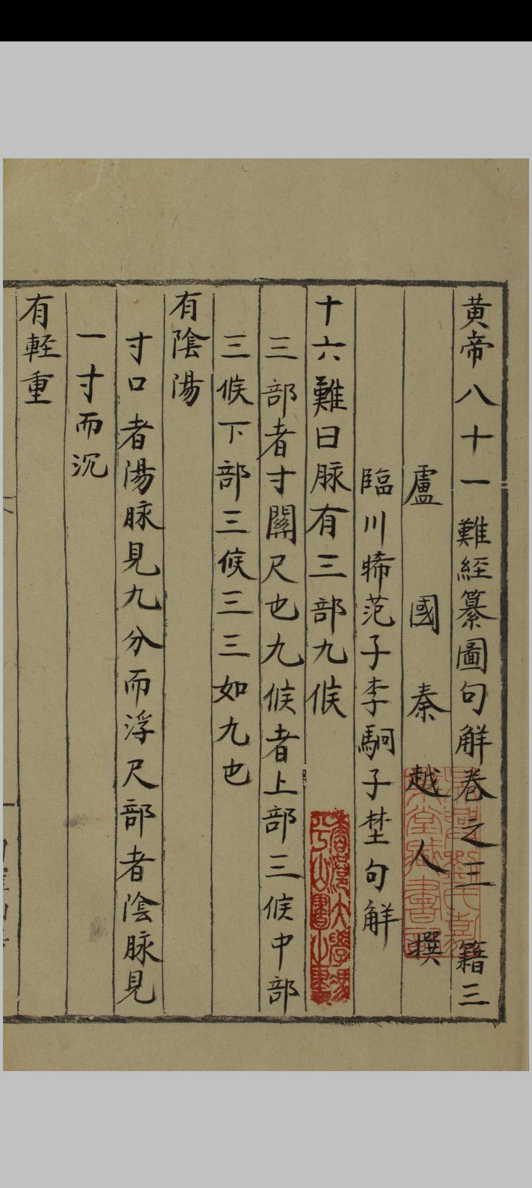 黄帝八十一难经纂图句解 七卷 李駉句解 秦越人撰 清代