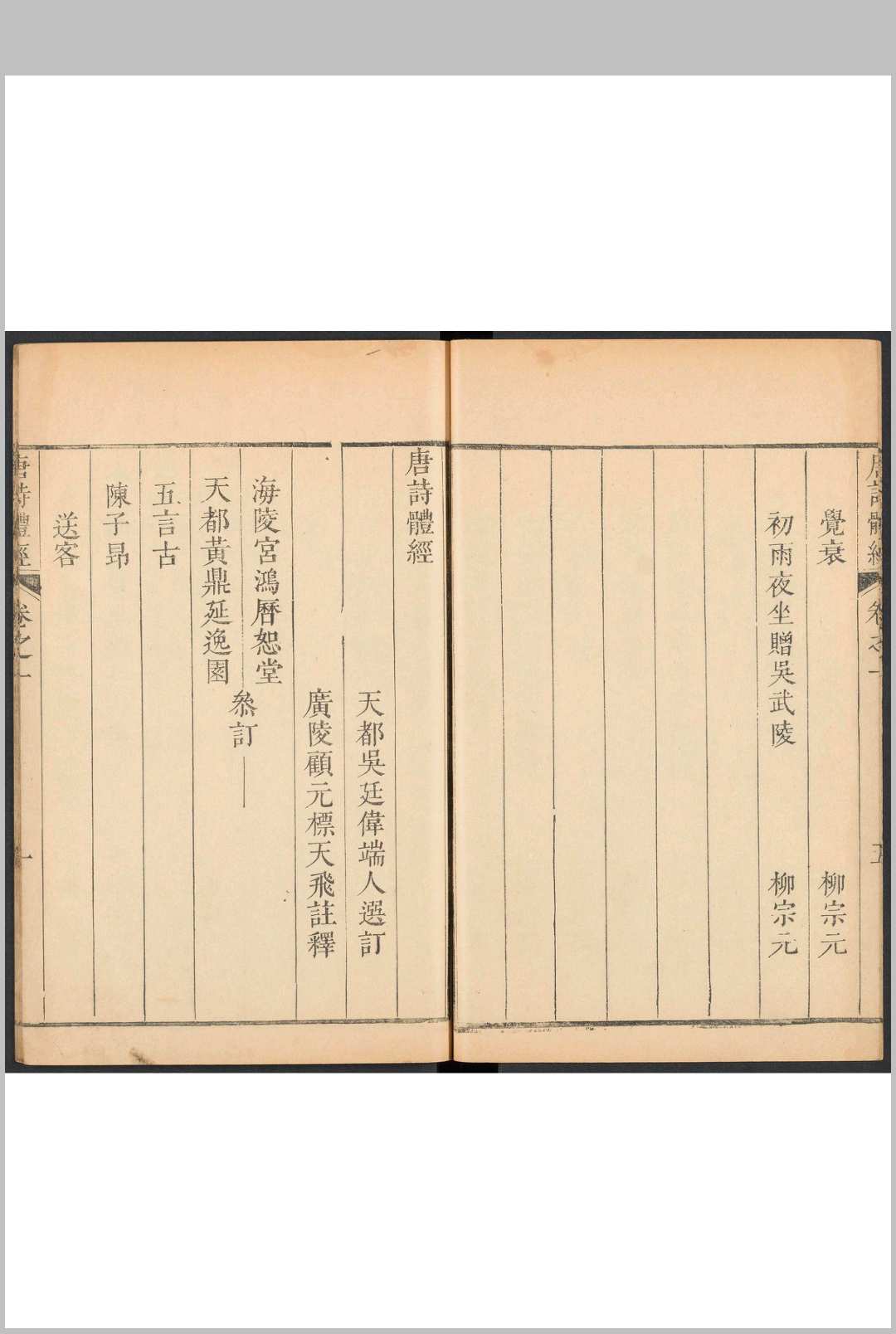 唐诗体经 六卷 吴廷伟选订 顾元标注释.光裕堂
