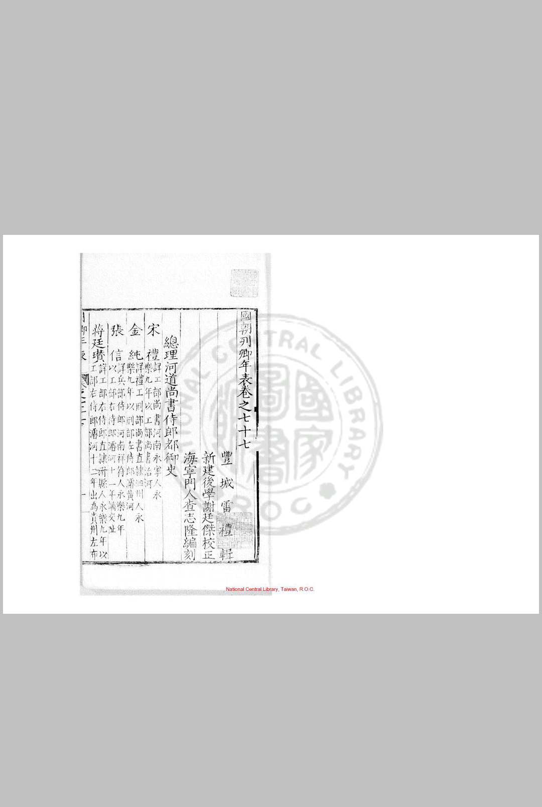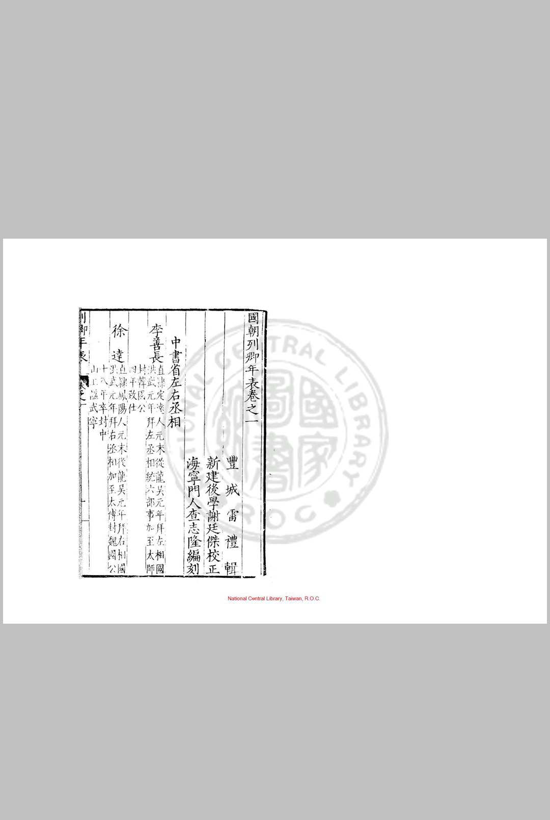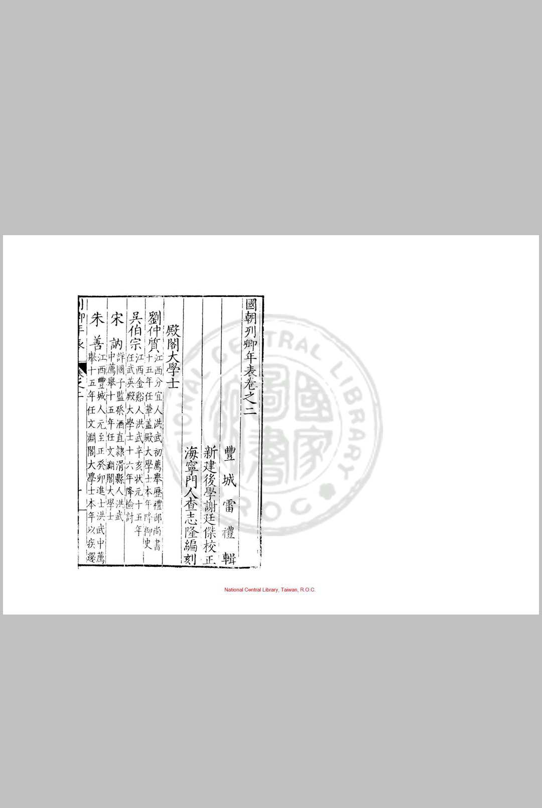 国朝列卿年表 (明)雷礼撰 明隆万间(15671620)海宁查志隆刊本