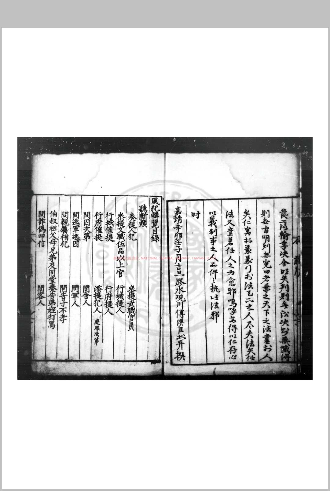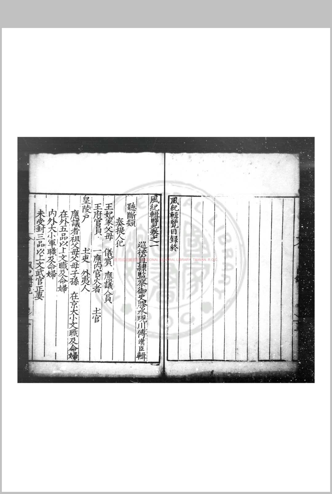 风纪辑览 (明)傅汉臣撰 明嘉靖辛卯(十年, 1531)原刊本