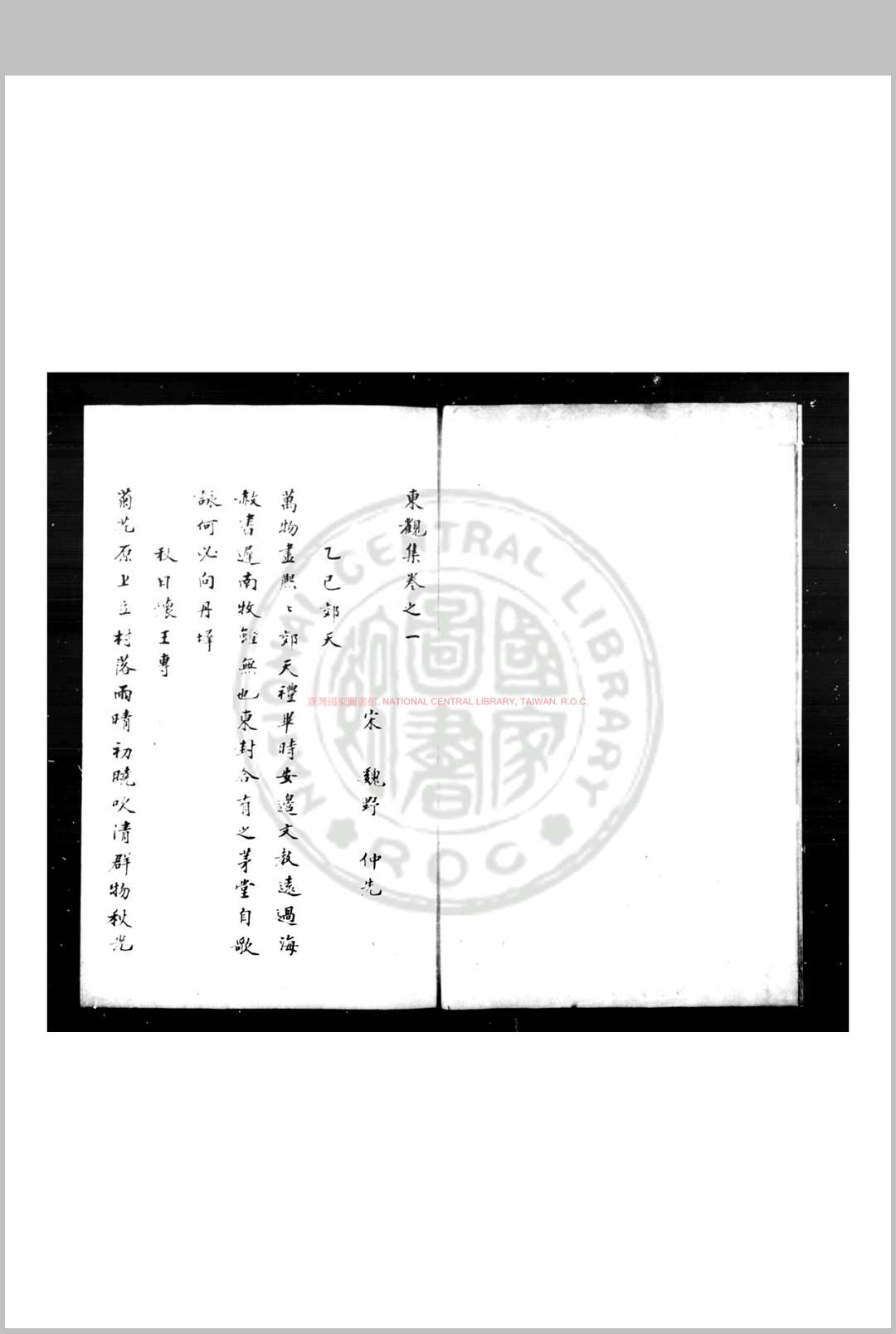东观集 (宋)魏野撰 钞本