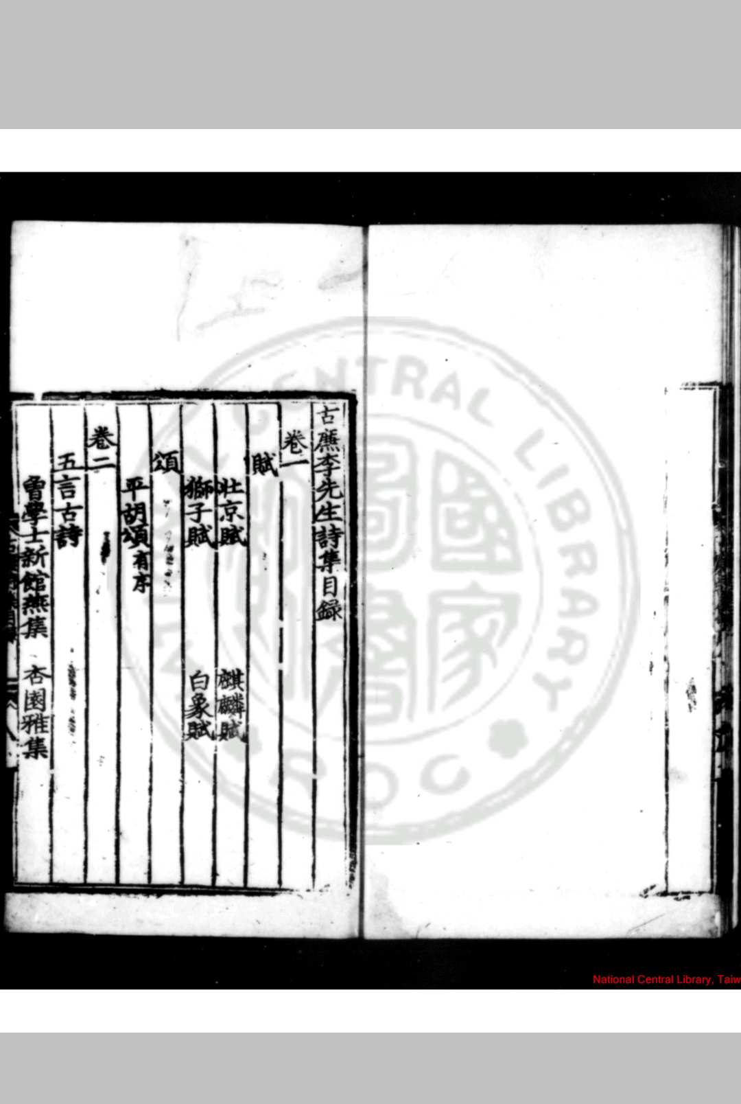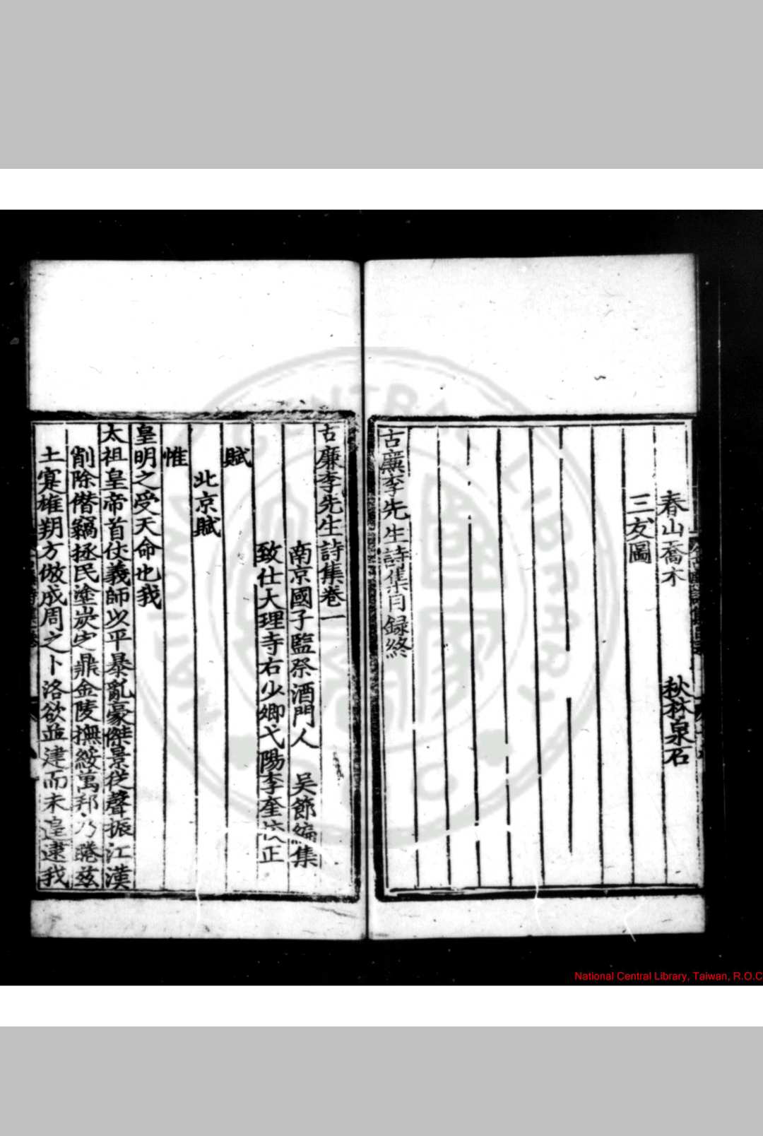 古廉李先生诗集 (明)李时勉撰 (明)吴节编 明景泰七年(1456)四明郡守姚堂刊配补影钞本