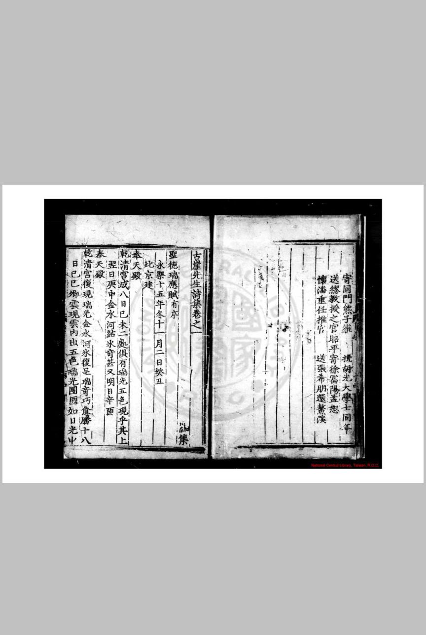 古廉李先生诗集 (明)李时勉撰 (明)吴节编 明景泰七年(1456)四明郡守姚堂刊配补影钞本