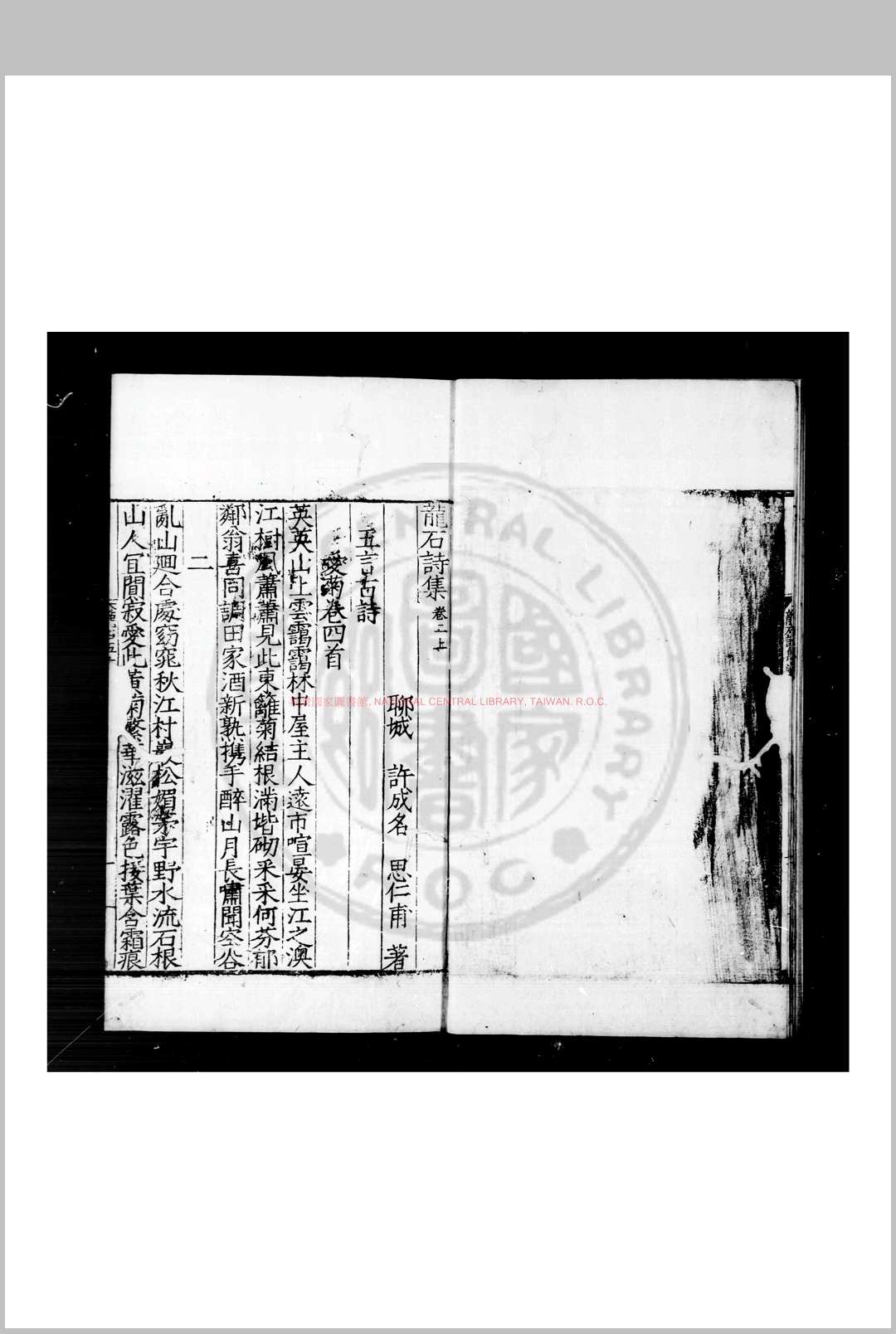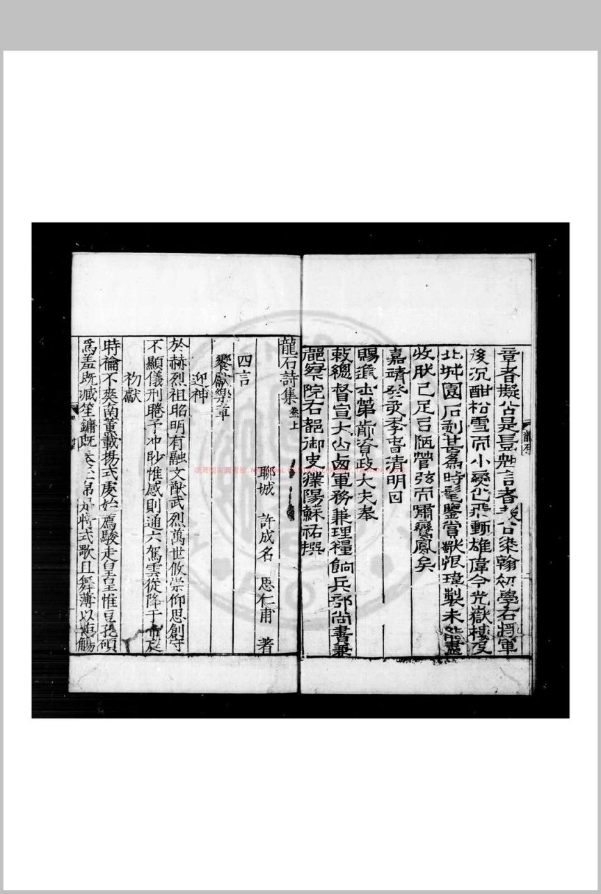 龙石诗集 (明)许成名撰 明嘉靖癸亥(四十二年, 1563)刊本