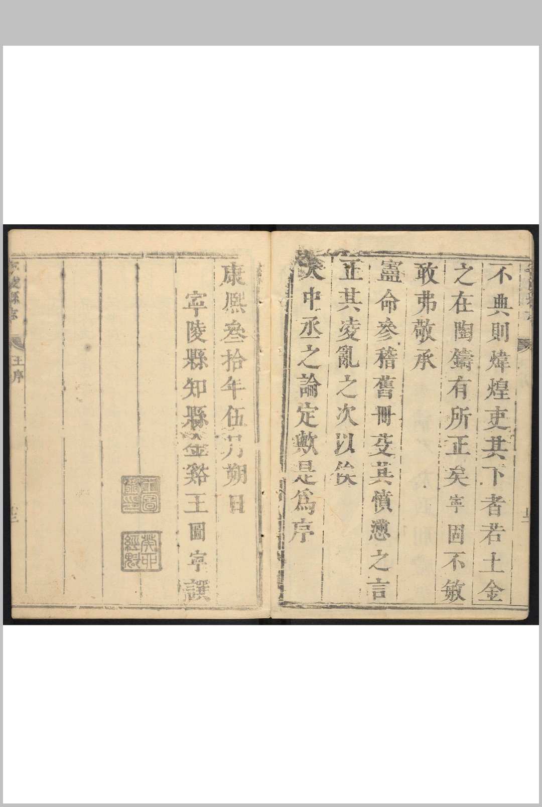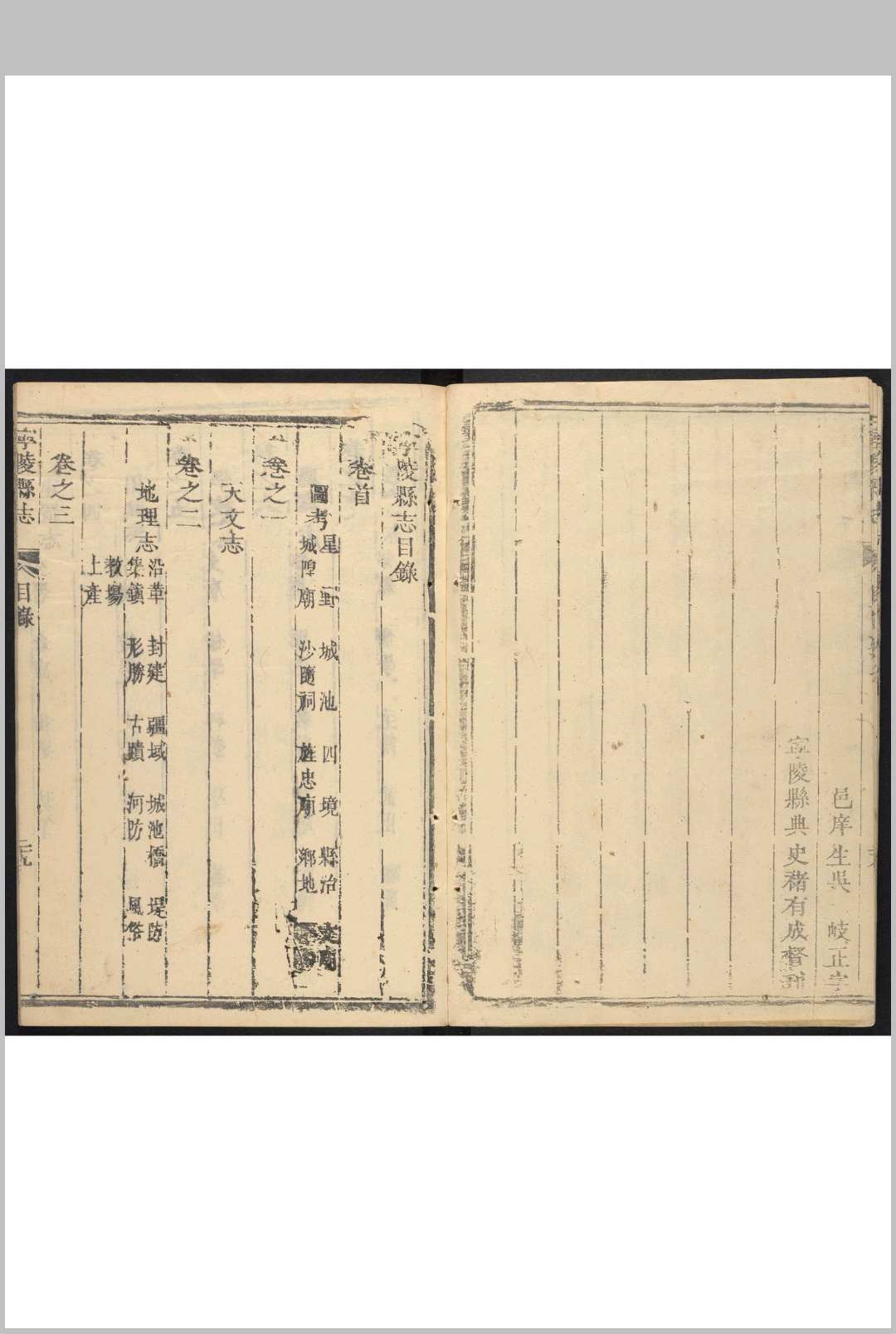 宁陵县志 十二卷, 卷首一卷 王图宁纂修. 清康熙30 [1691] 修.清康熙32 [1693] (乾隆间[i.e. bewteen 1736 an诶 1795]剜补重印本)