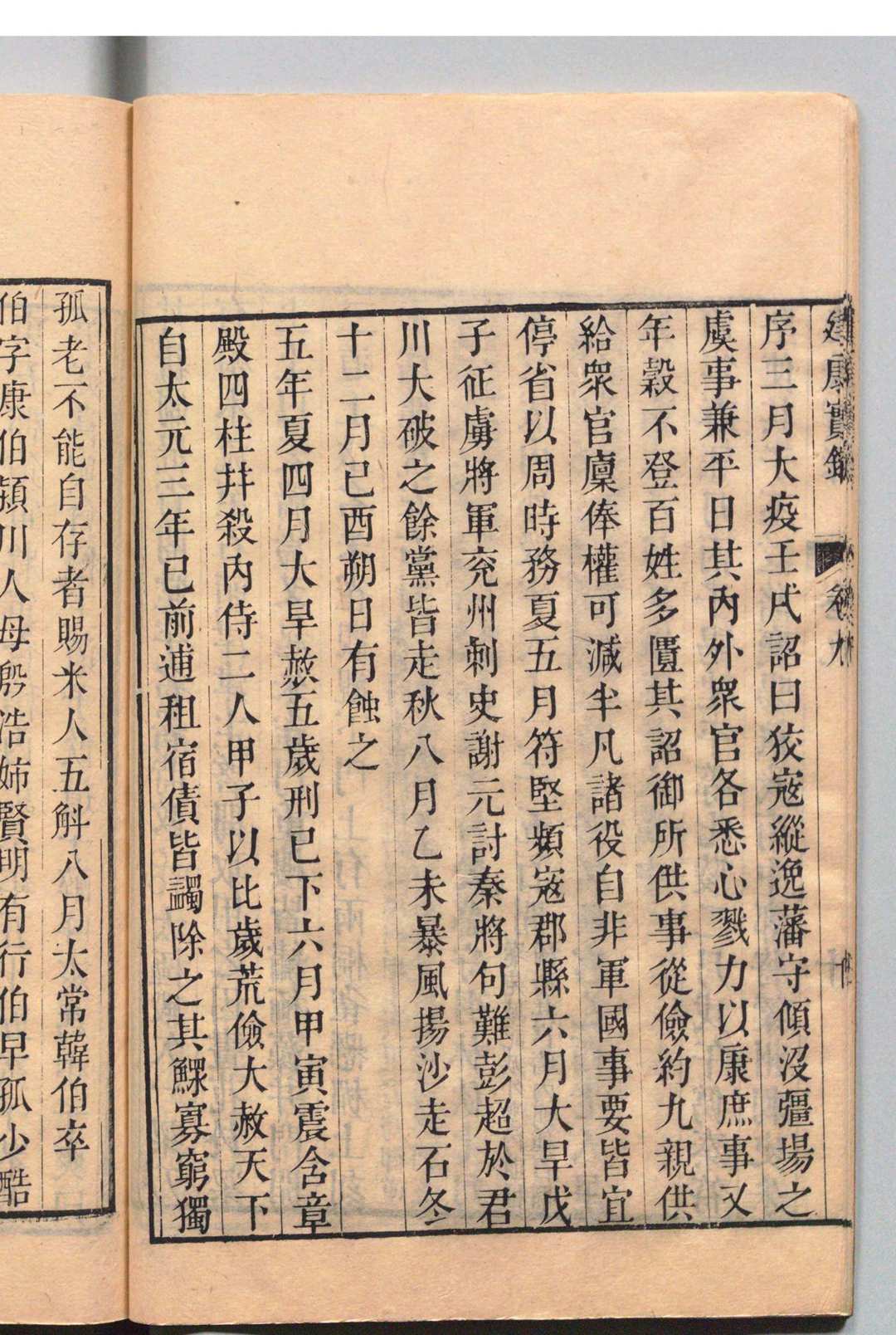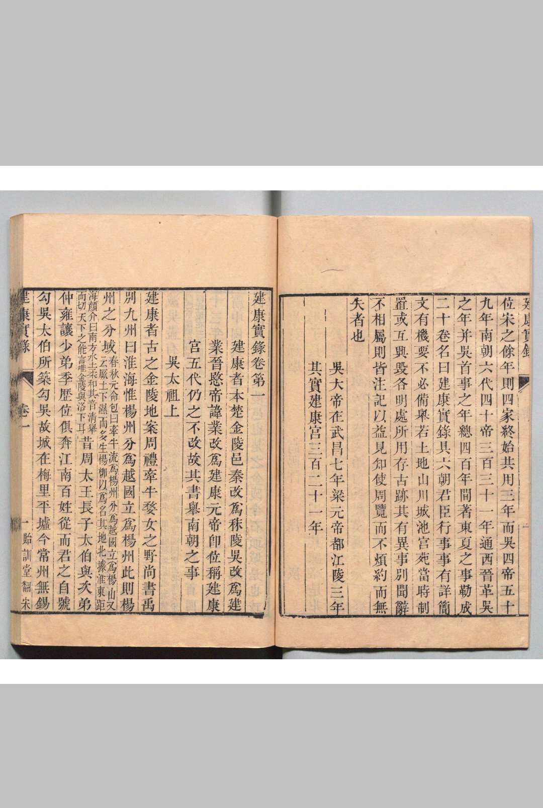 《建康实录》是唐代许嵩编撰的六朝史料集。许嵩,高阳(今河北蠡县一带)人,当是祖籍。此书第4卷提到“案吴大帝即王位黄武元年壬寅至唐至德元年丙申,合五百三十五年矣”,知此书的写作不早于唐肃宗时代,书中记载建都建康(今南京)的吴、东晋、宋、齐、梁、陈六代史实及轶事的别史。