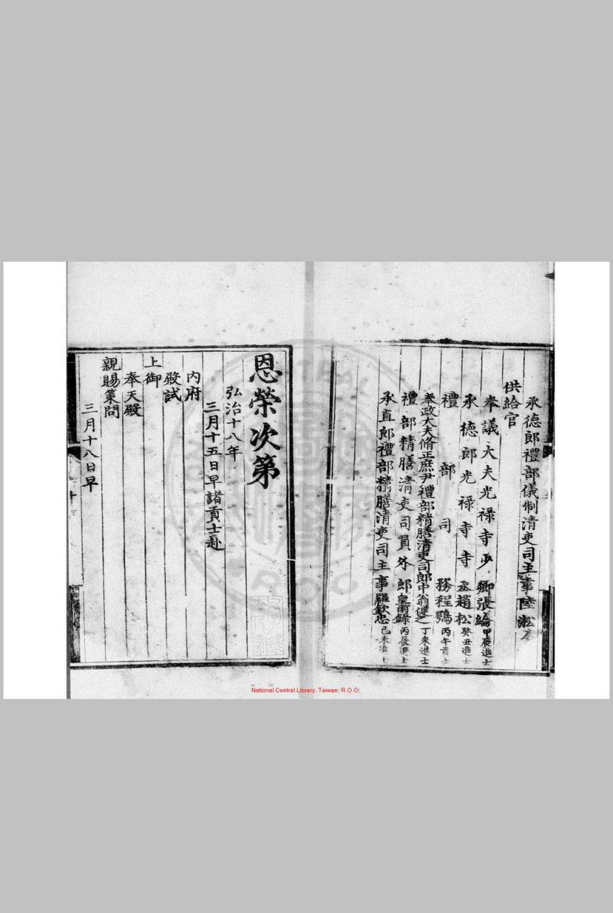 弘治十八年进士登科录 (明)刘健编 明弘治十八年(1505)刊本