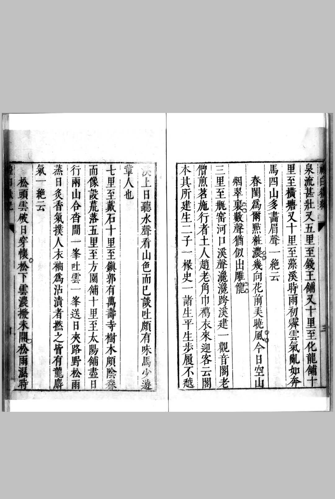 是书自纪其万历庚戌礼神白岳之事。卷末又题曰《蓬栊夜话》。殆是书有二名耶。《因树屋书影》曰:“尝见槜李李君实所为《礼白岳记》。分视之各为一则,合视之共为一记,而诗即连缀于中。分视之则诗,合视之诗亦记也。诗文照映,使山水神情无所遁于其间,真是合作。今人为游记者,意在谋篇,终难逐境。章法固自贯串,境地终未分明。且记自记,诗自诗,使读者因记以忆诗,持诗以录记,笔墨间隔,神情不属,不数行欠伸欲卧矣。故予以为李公之记,可为今人法也” 云云。其推挹甚至,然终不出万历后纤巧之格。所谓才士之文,非作者之文也。