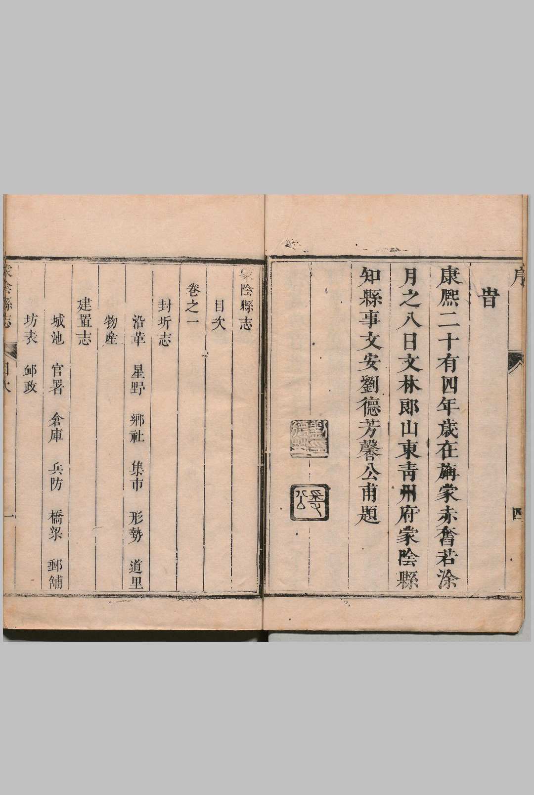 蒙阴县志 8卷 刘德芳 清康熙24年