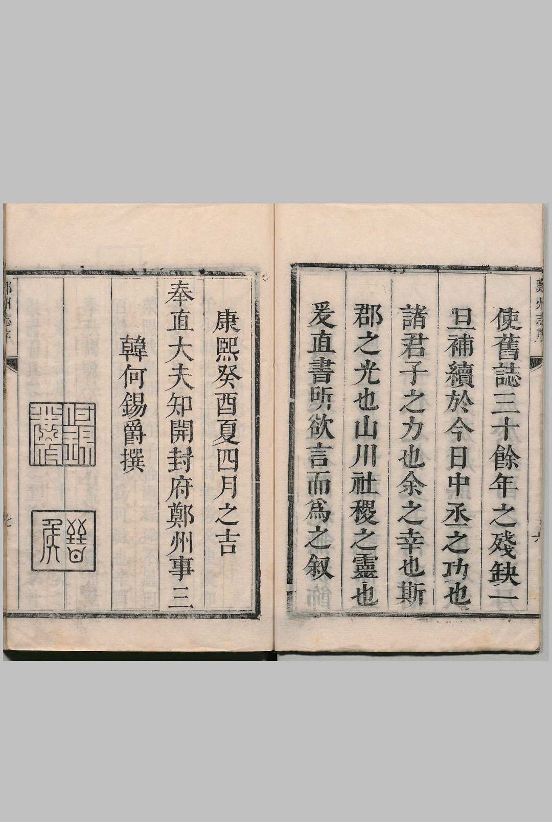 郑州志 12卷首1卷 何锡爵 清康熙32年