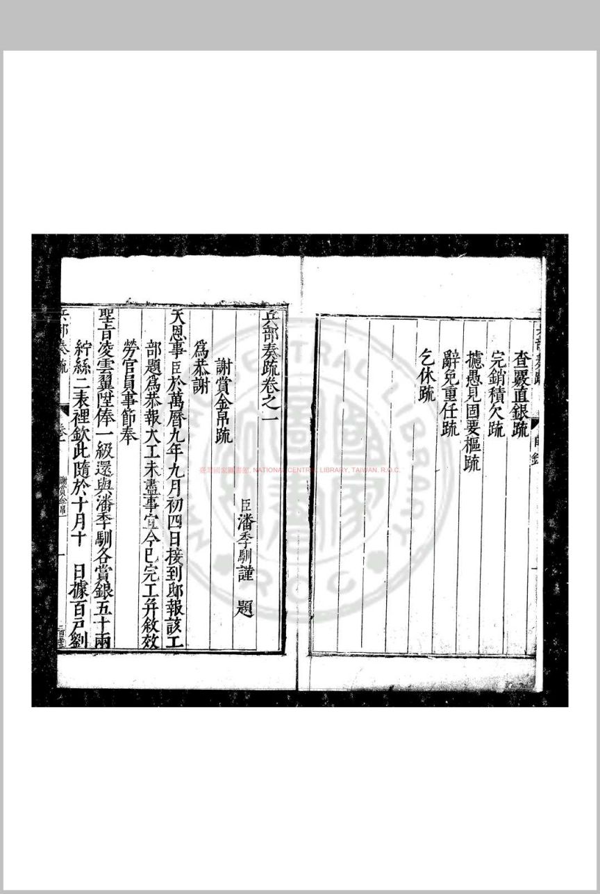 兵部奏疏 (明)潘季驯撰 明刊本