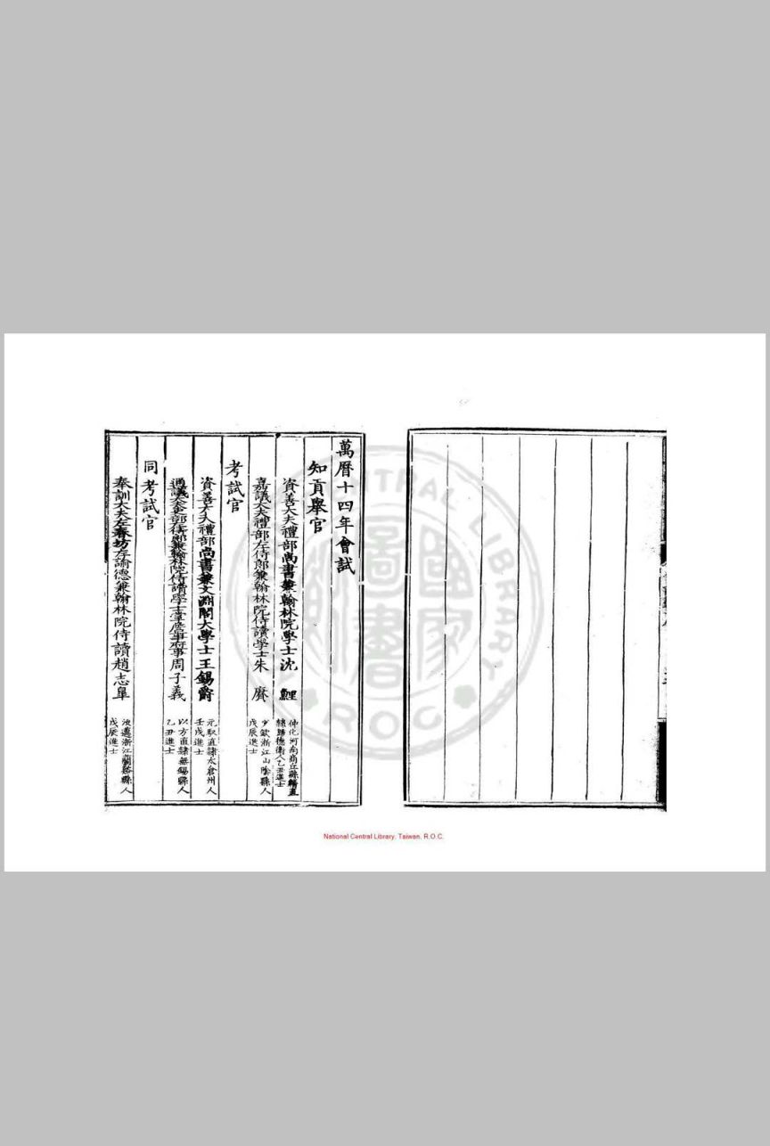 万历十四年会试录 (明)王锡爵编 明万历间(15731620)刊本