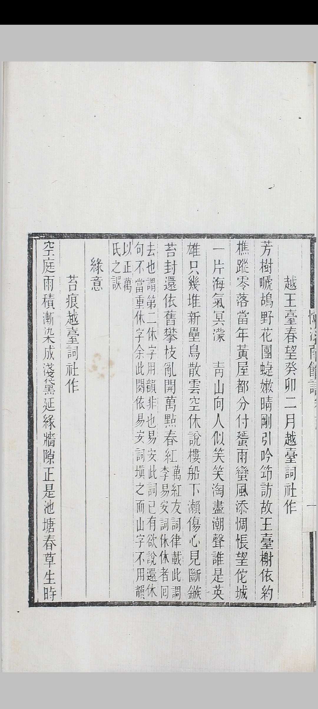 词集名。清陈澧作。一卷。有民国三年汪兆镛辑刻《微尚斋丛刻》本、民国间《清名家词》排印本。