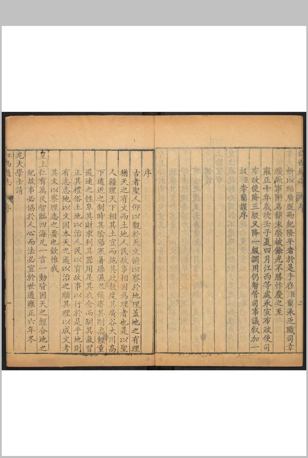 江西通志 162卷, 卷首3卷 陶成等纂修 高其倬, 谢旻等总裁.清雍正10年刊本