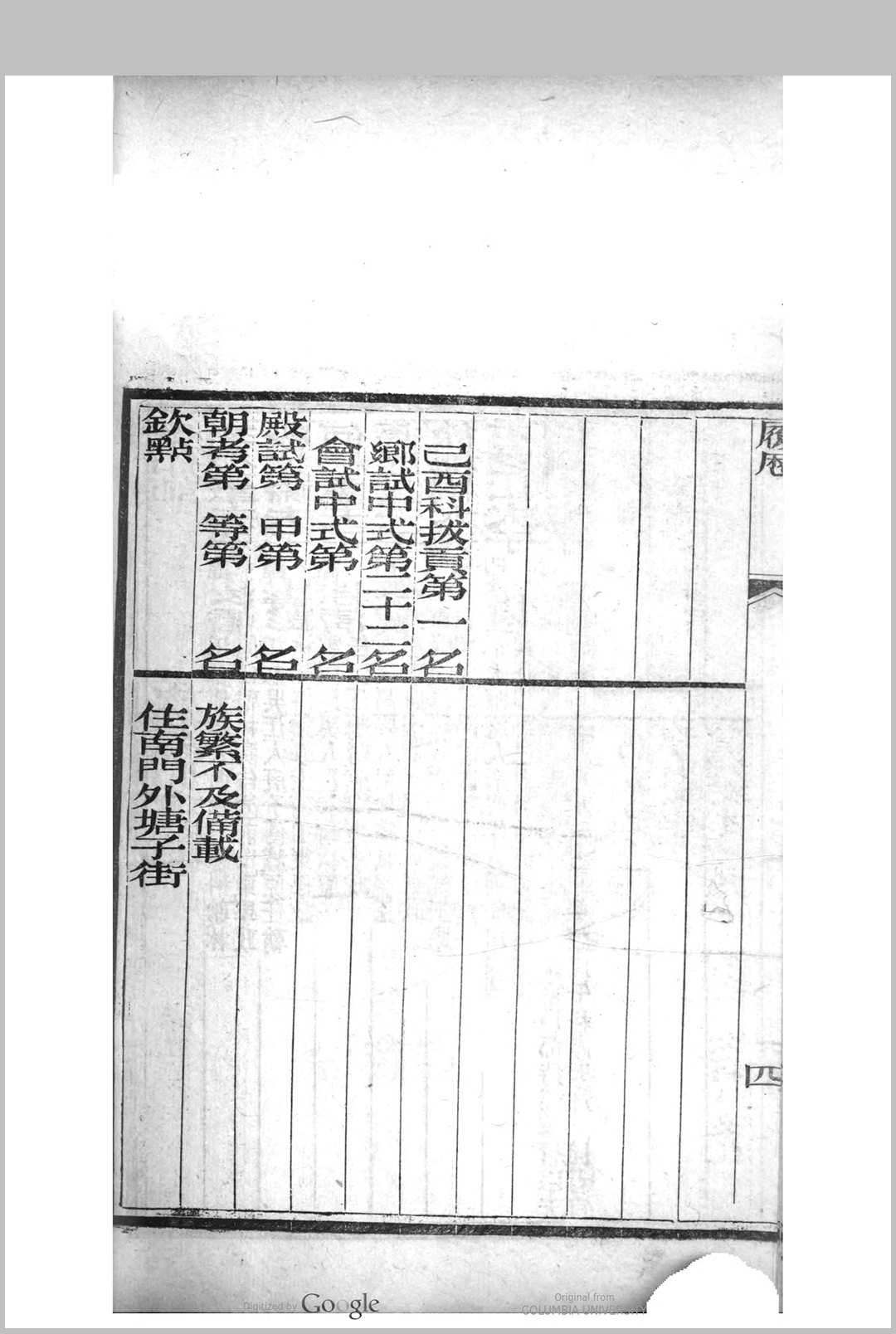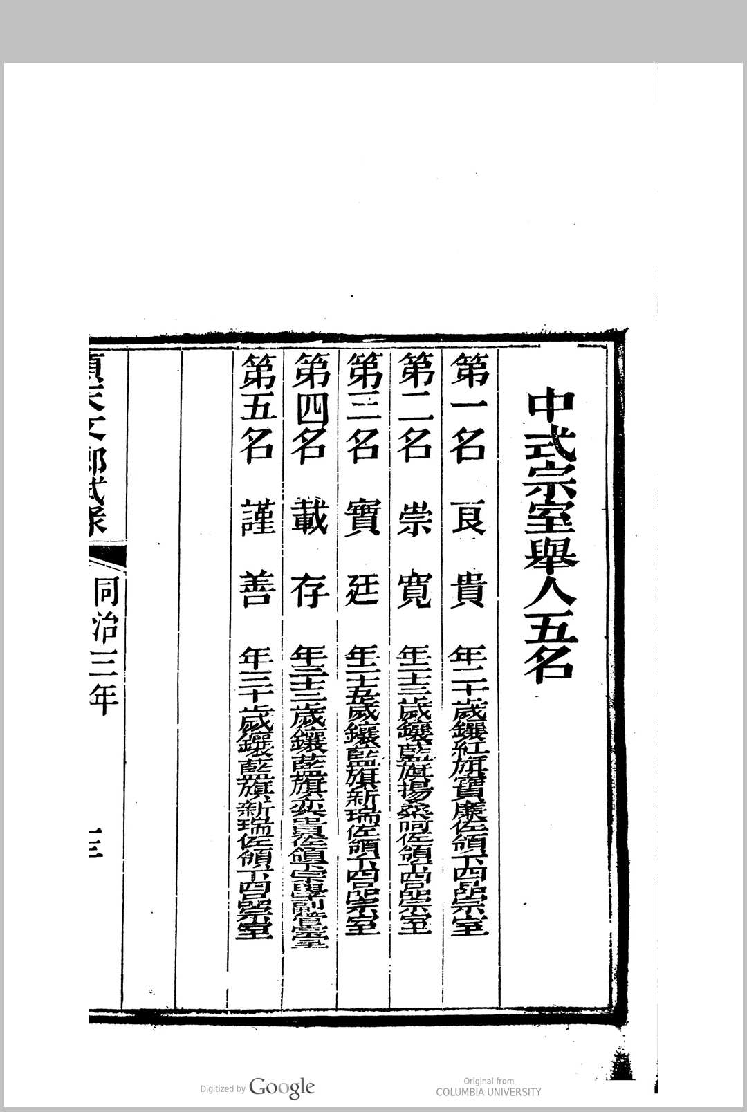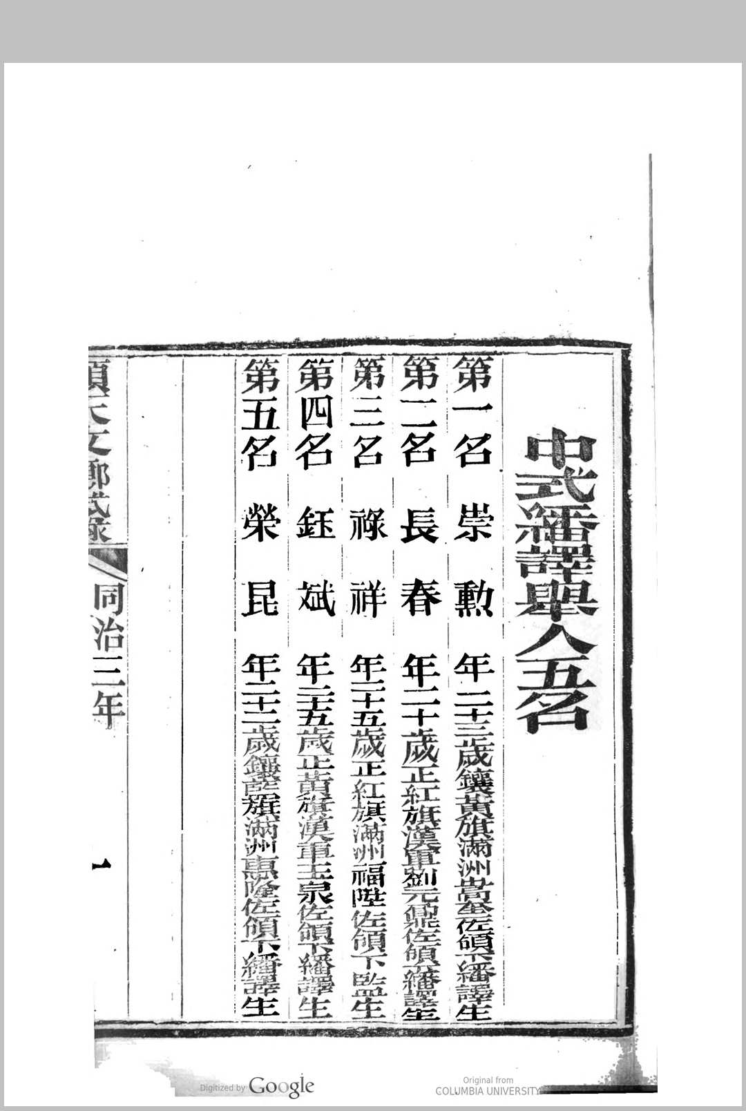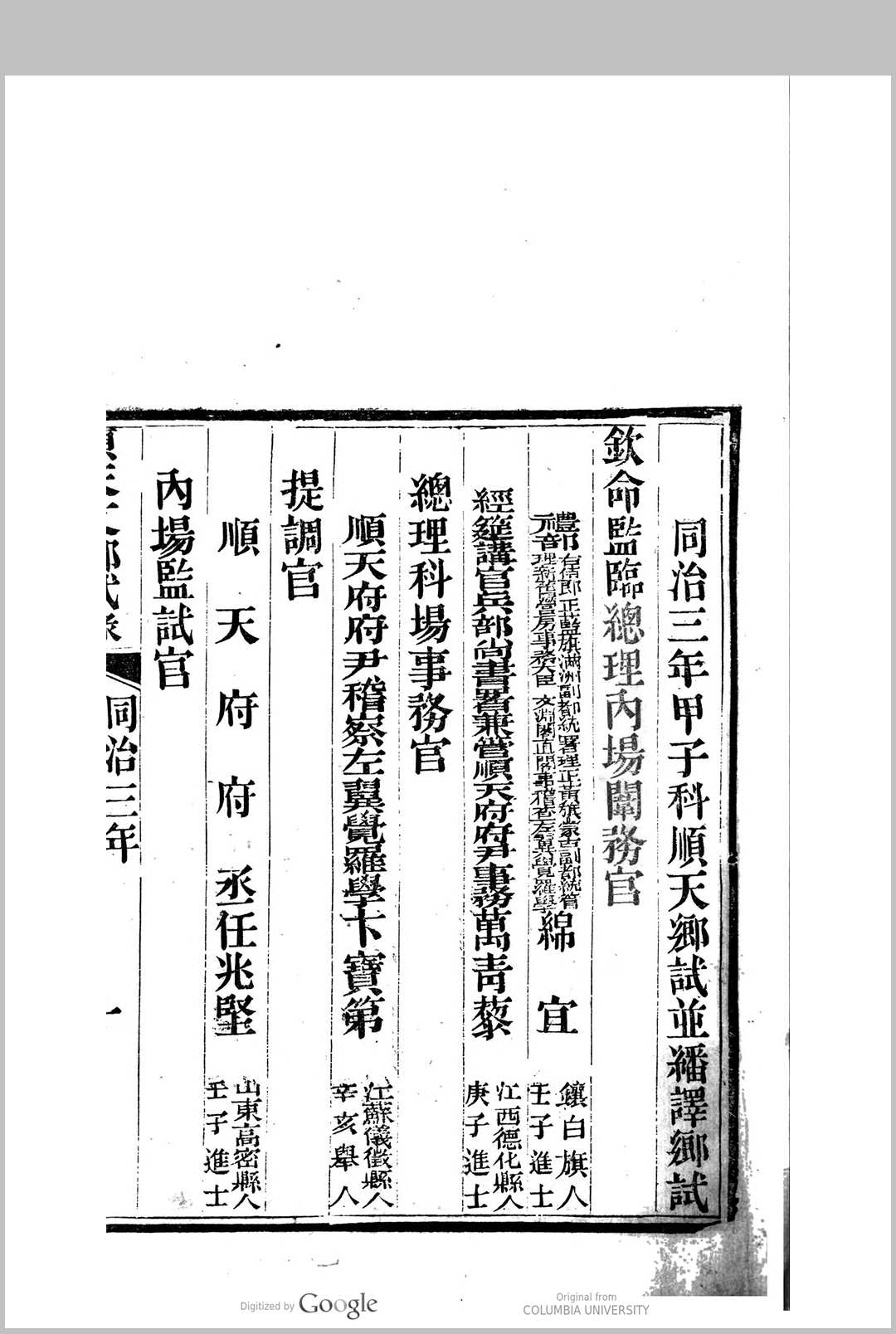 顺天乡试同年齿录 同治三年甲子科