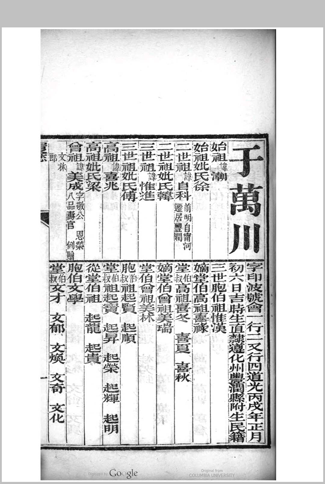 恩赐荫生同官齿录 光绪乙亥年