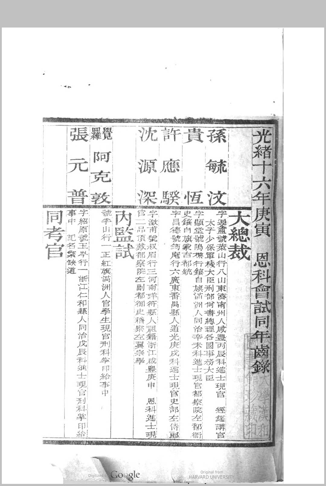 会试同年齿录 (光绪16年庚寅恩科)
