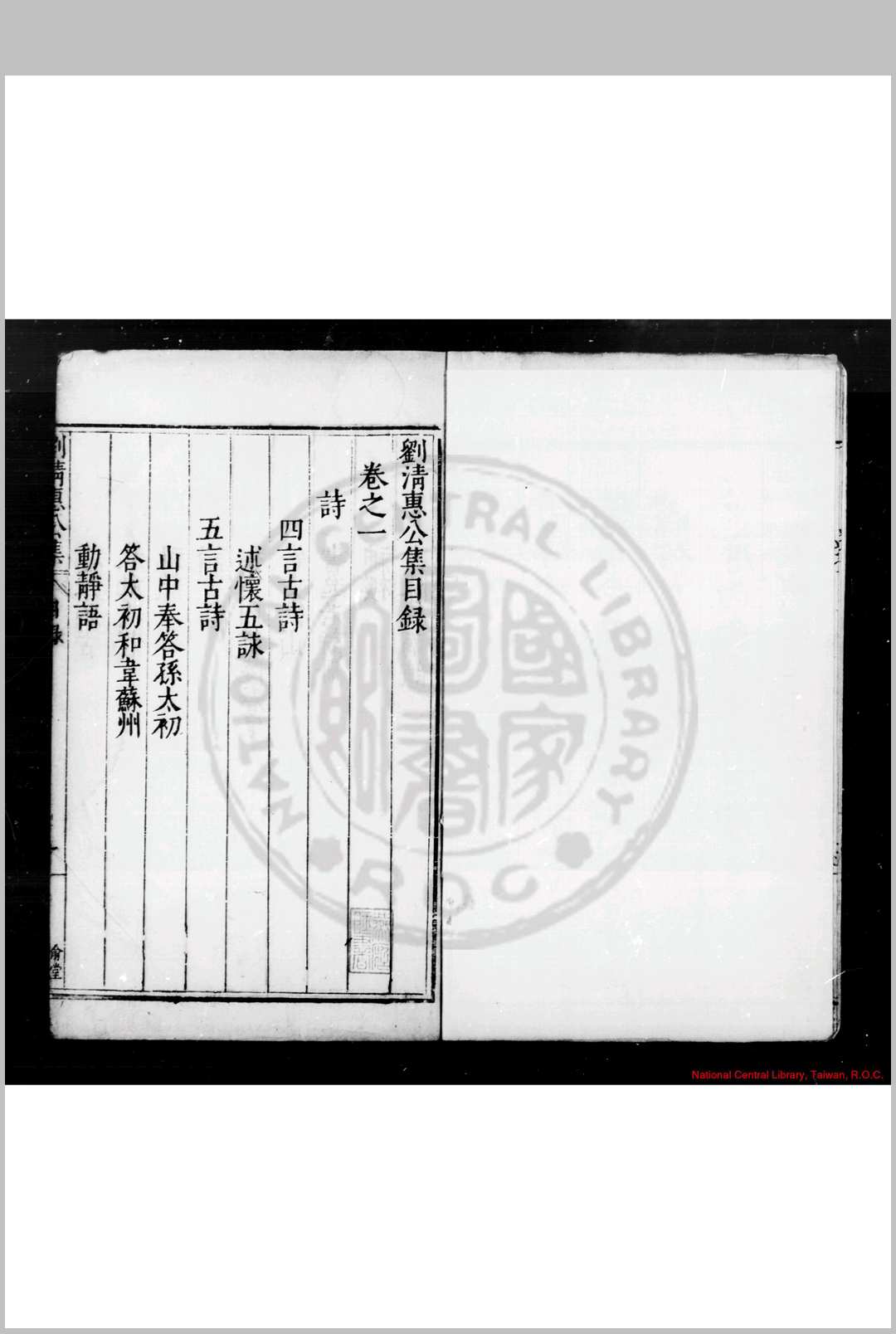 刘清惠公集 (明)刘麟撰 明万历丙午(三十四年, 1606)湖州知府陈幼学刊本