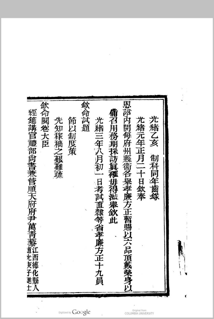 制科同年齿录 光绪乙亥科
