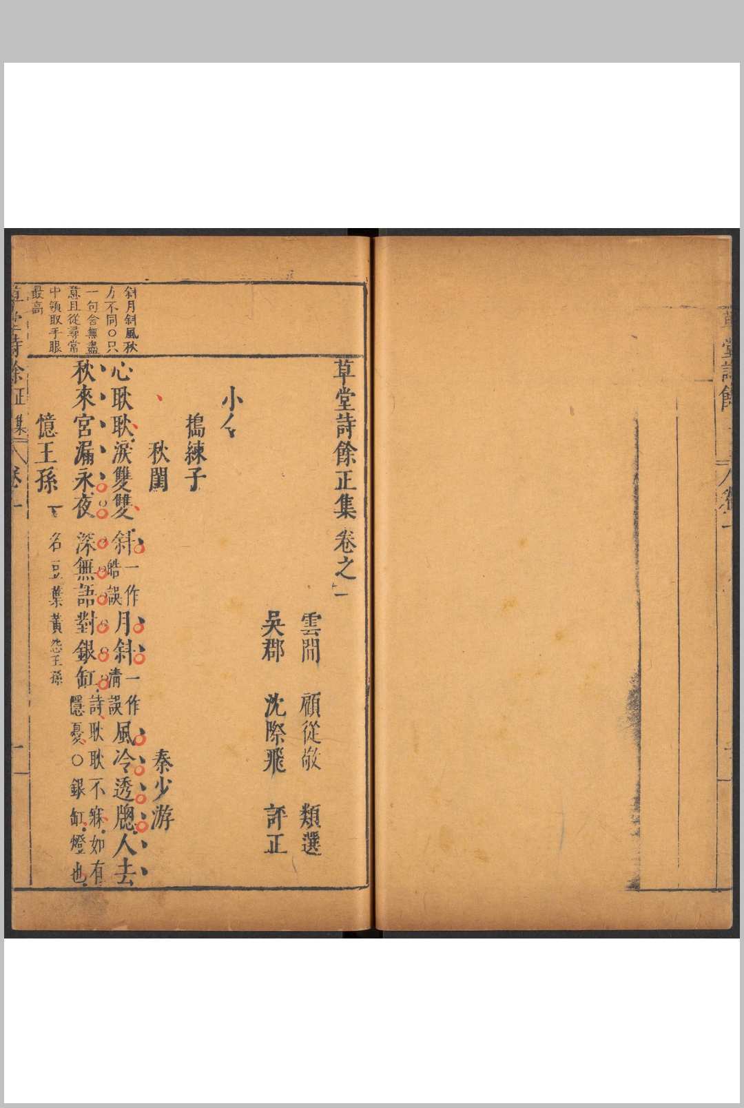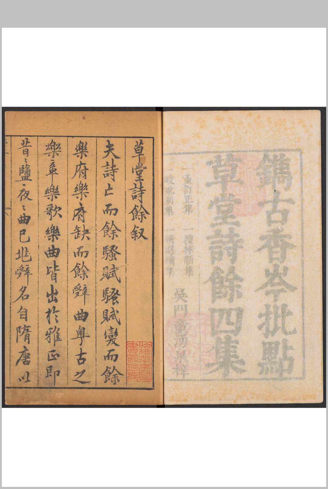 古香岑草堂诗馀 正集 6卷, 新集 5卷, 续集 2卷, 别集 4卷 顾从敬, 沉际飞等选评.吴门童涌泉, 明末