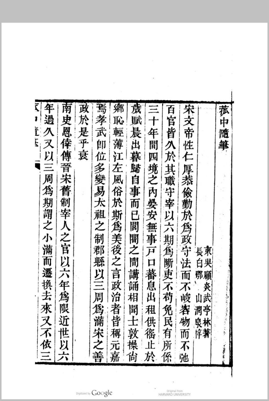 《菰中随笔》有三卷本和一卷本两种,三卷本记载顾炎武读书所得、常言俗谚、师生问答之语四百馀条,涉及历史地理、天文曆法、风俗占卜、名物训诂、饮食养生、语言文字诸多方面;一卷本主要摘录汉书、晉书、宋书等正史中有关史料,比如历代官员的銓选、士子的选拔、职官的演变、官制的分合等,並作分析评论。