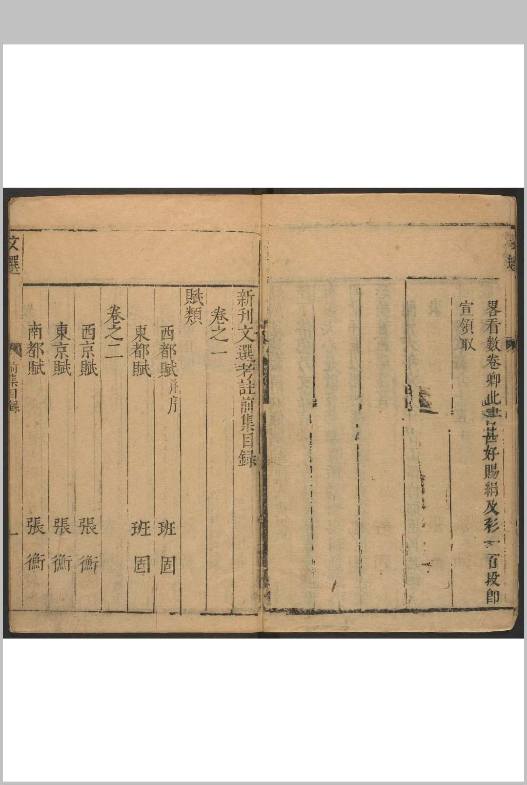 新刊文选考注 前集十五卷, 后集十四卷 萧统选 李善等考注 张凤翼纂注