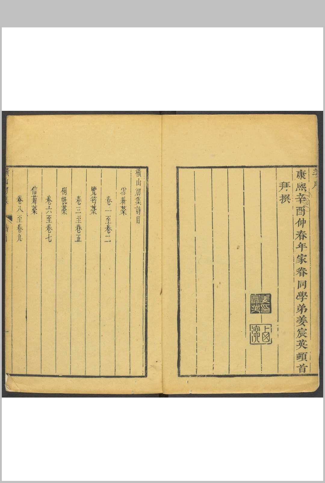 横山初集 十六卷 胡二斋先生评选横山初集不分卷 横山文钞不分卷 易皆轩二集四卷 裘琏撰.慈谿裘氏绦云居, 清康熙戊午辛未 1730年