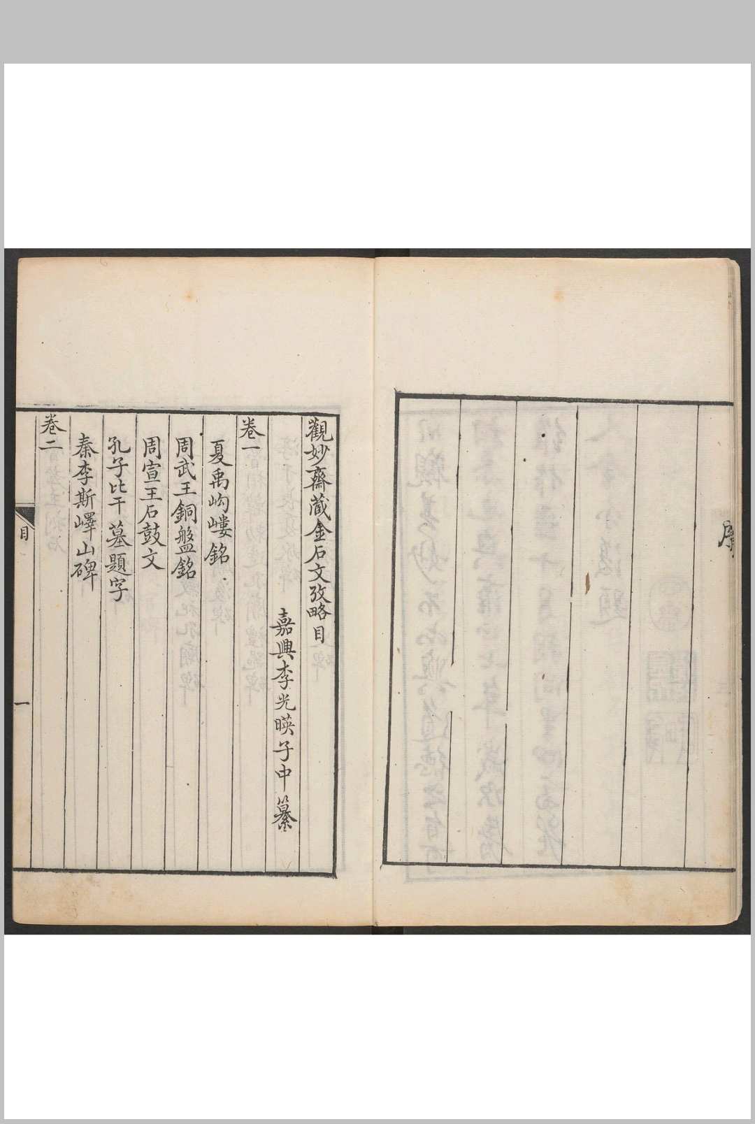 观妙斋藏金石文考略 十六卷 李光暎观妙斋, 清雍正7年