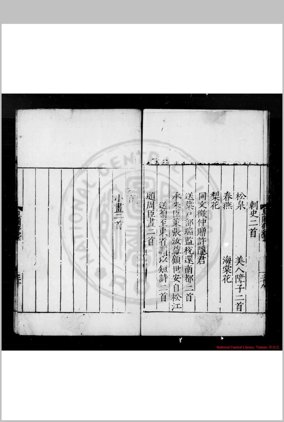 东山诗集 (明)刘大夏撰 明嘉靖丙戌(五年, 1526)屠应埙河南重刊本