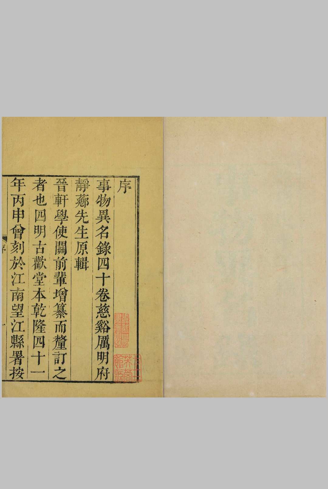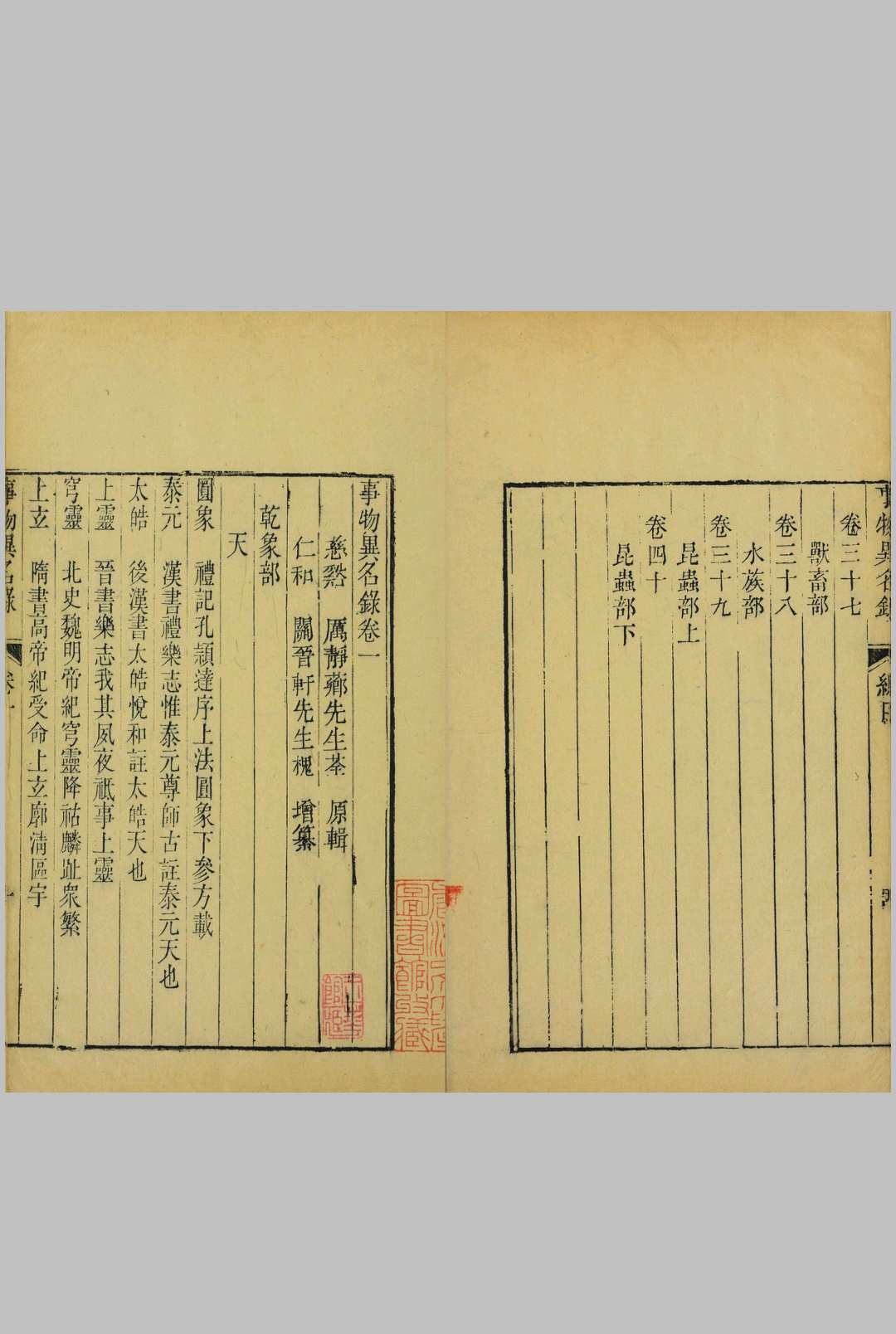 事物异名录.四十卷.清.厉荃原辑.关槐增纂.清乾隆五十三年刊本