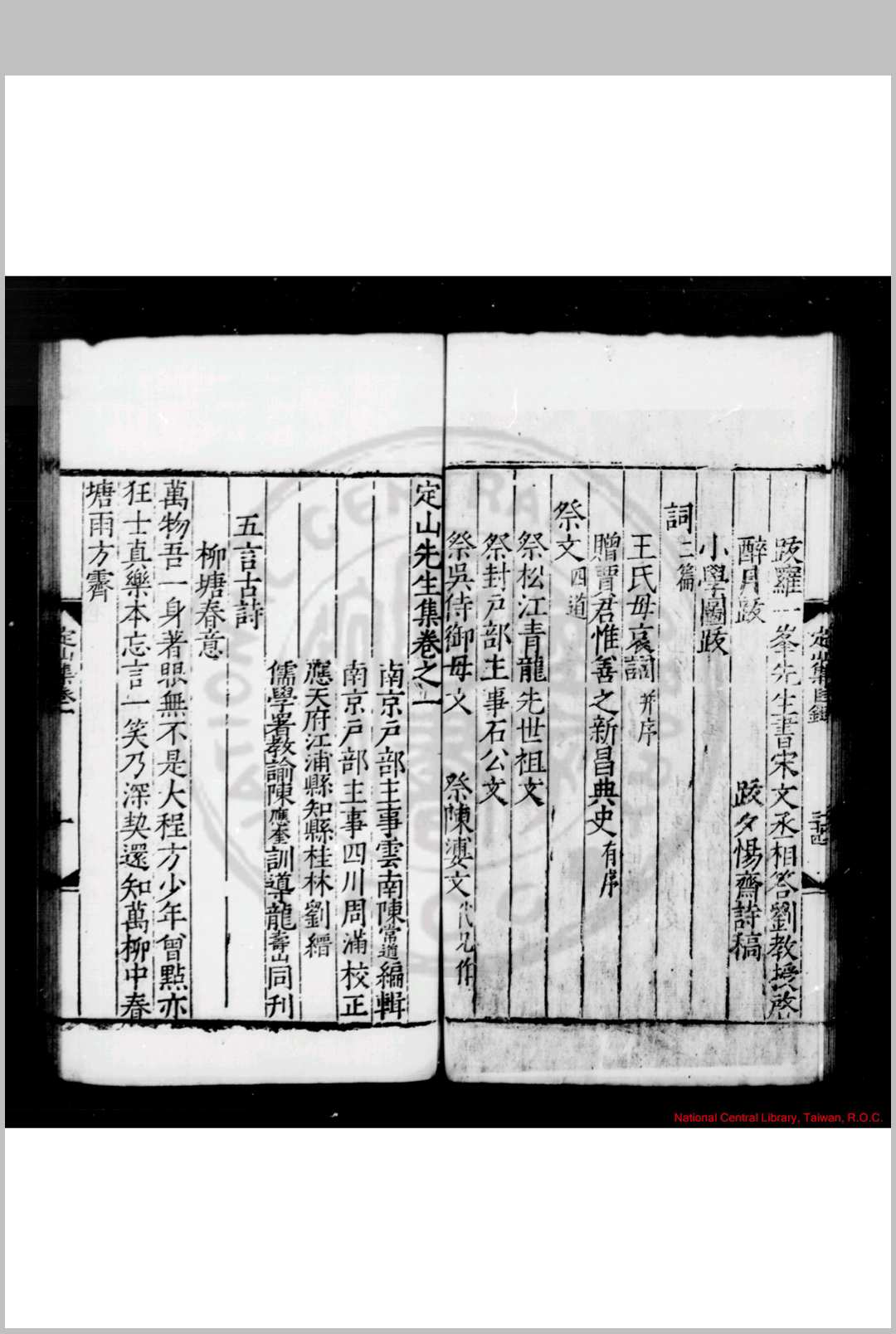 定山先生集 (明)庄昶撰 (明)陈常道编 明嘉靖乙未(十四年, 1535)刘缙等江浦刊本