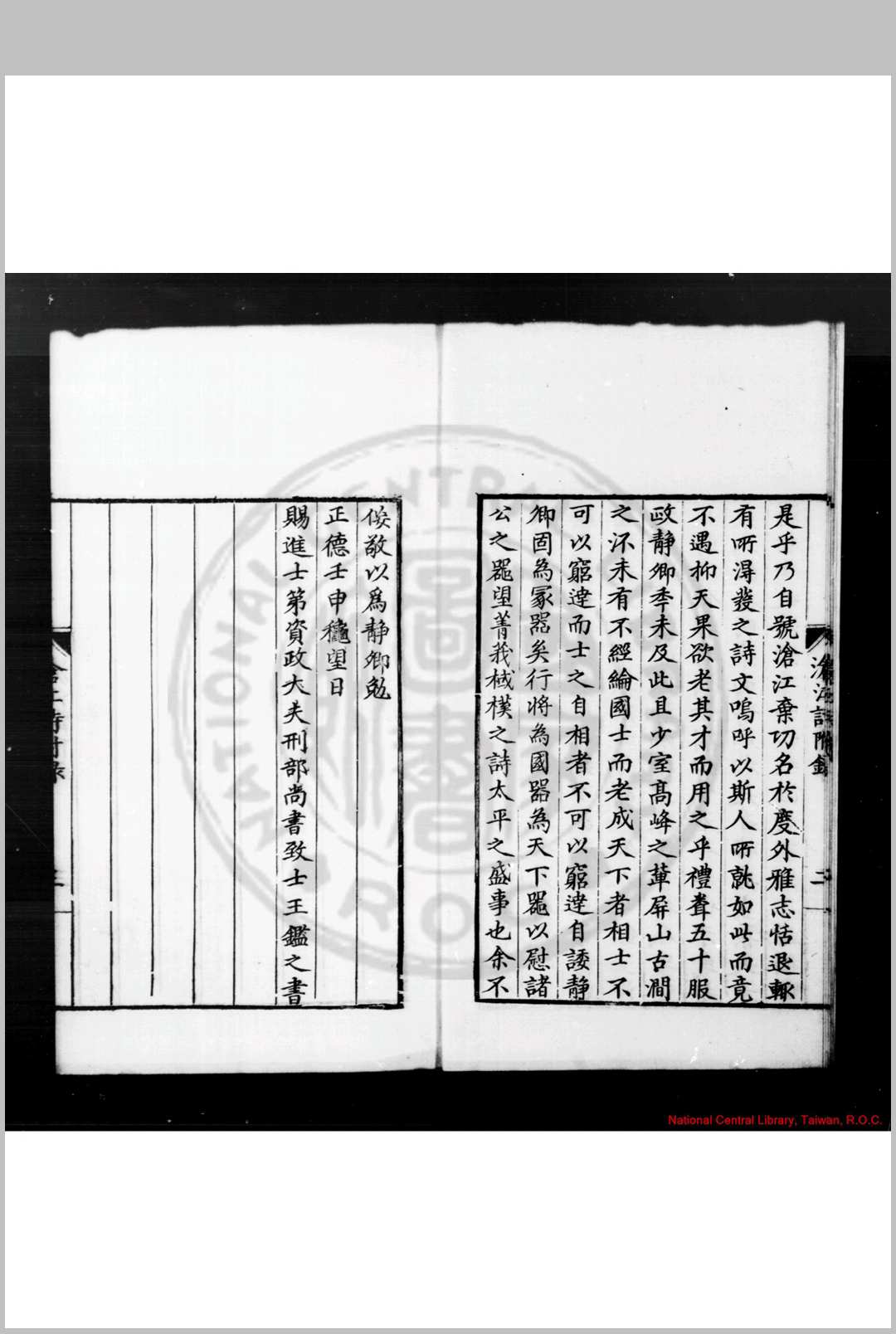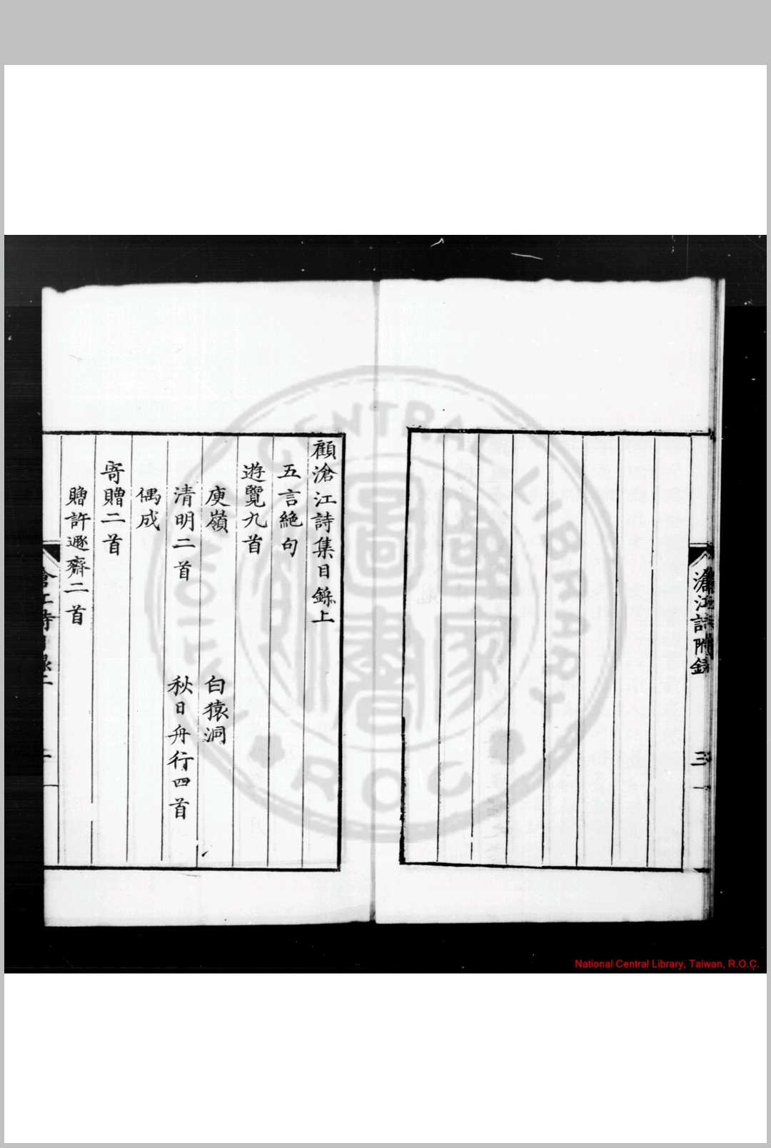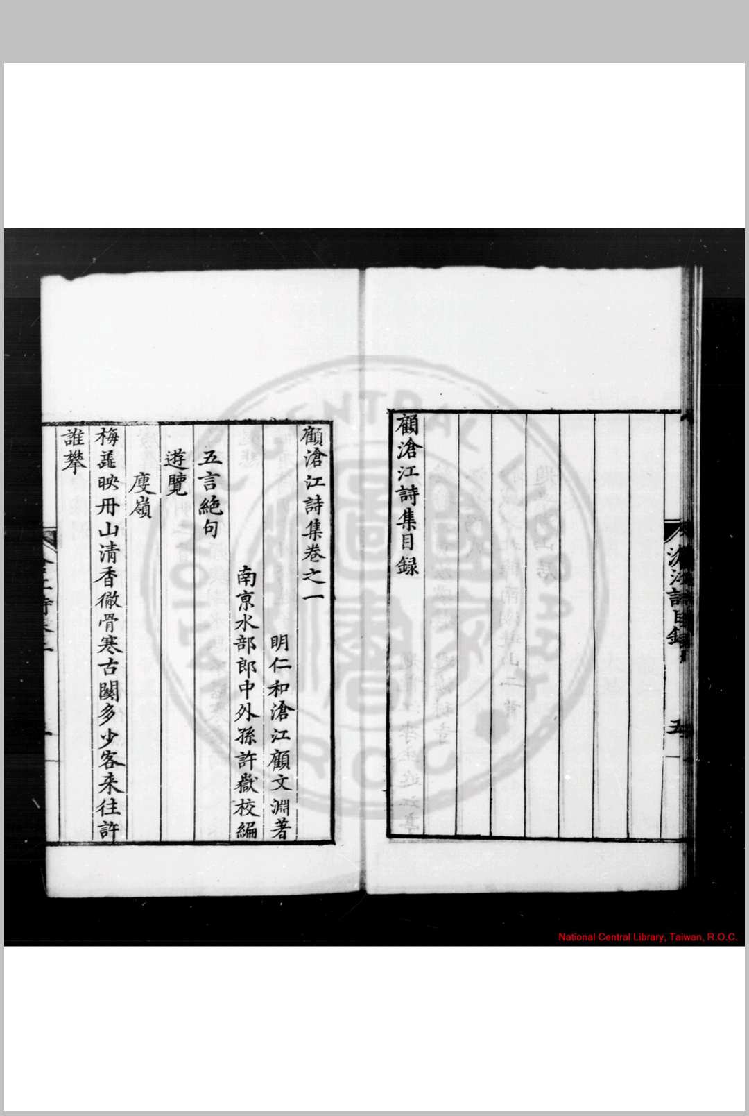 顾沧江诗集 (明)顾文渊撰 明嘉靖丙辰(三十五年, 1556)仁和顾言刊本
