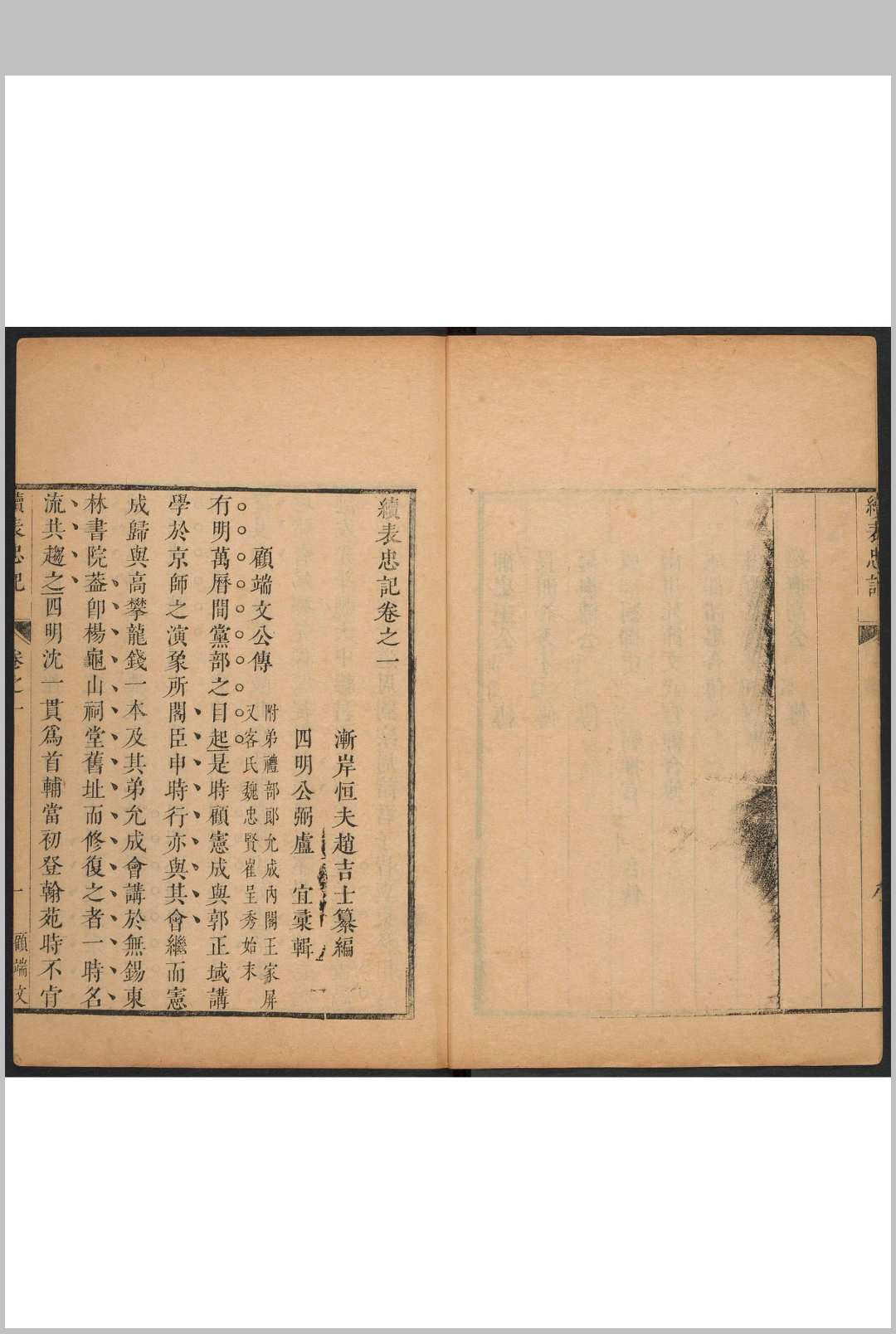 续表忠记 8卷 赵吉士纂编 卢宜汇辑 寄园赵氏藏版