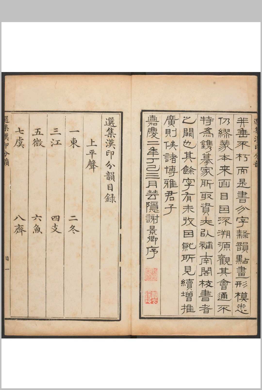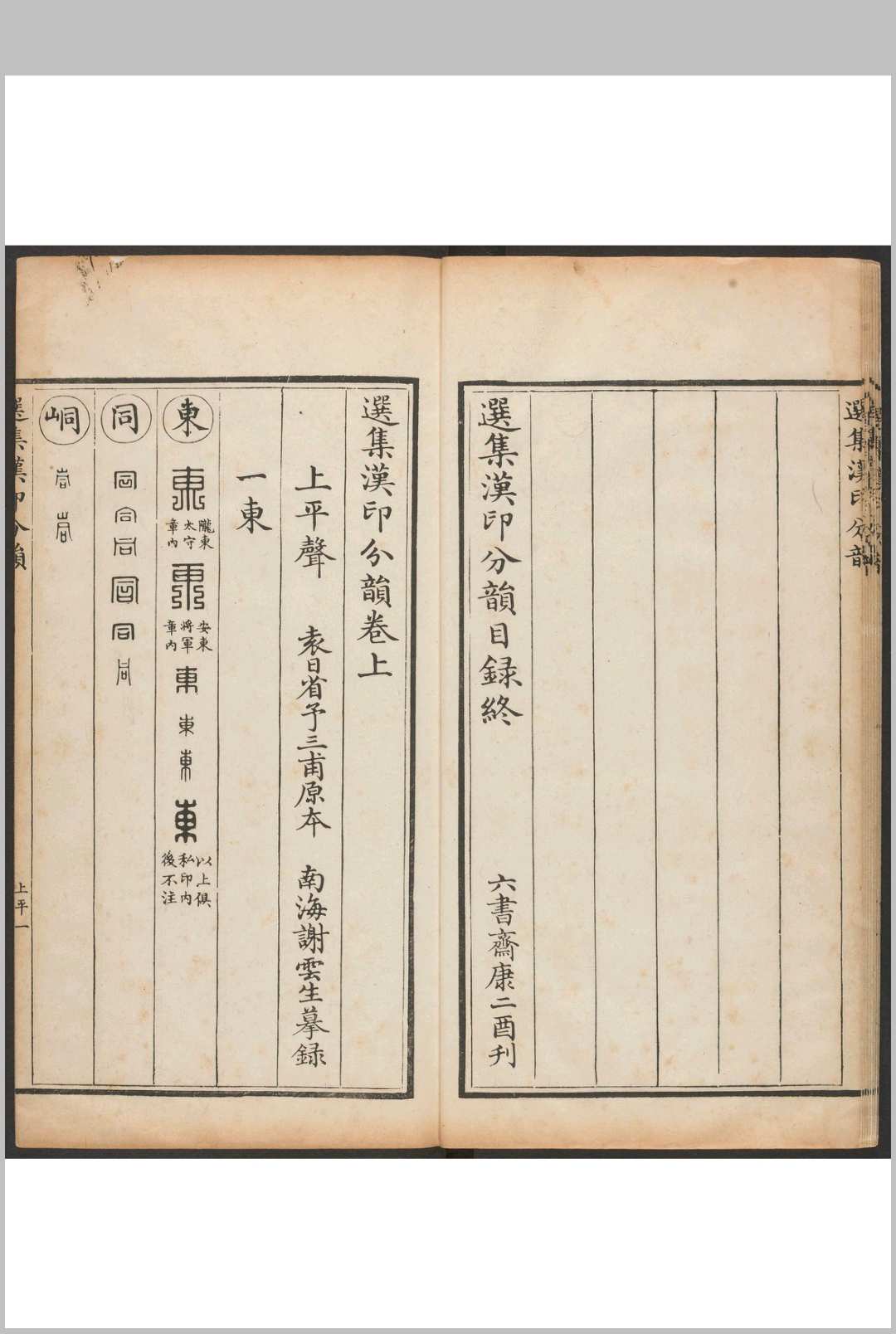 选集汉印分韵 二卷 续集二卷 袁日省撰, 谢景卿续集 漱艺堂, 嘉庆28年