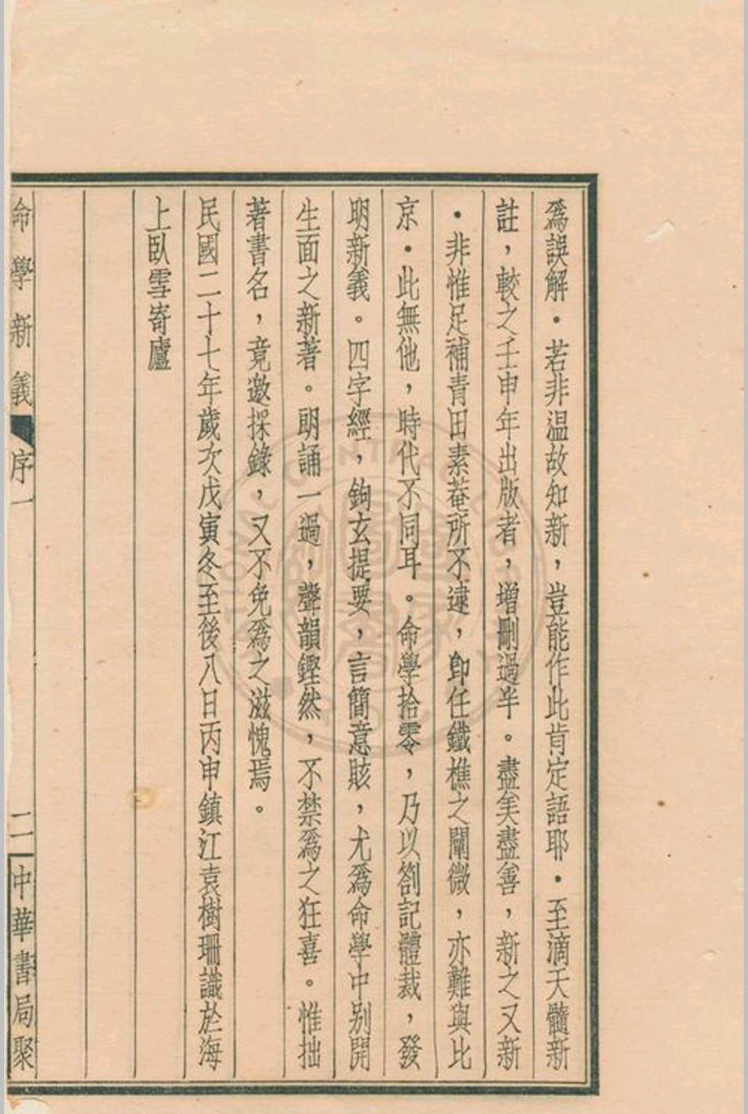 命学新义 水绕花堤馆主著 1939 中华书局