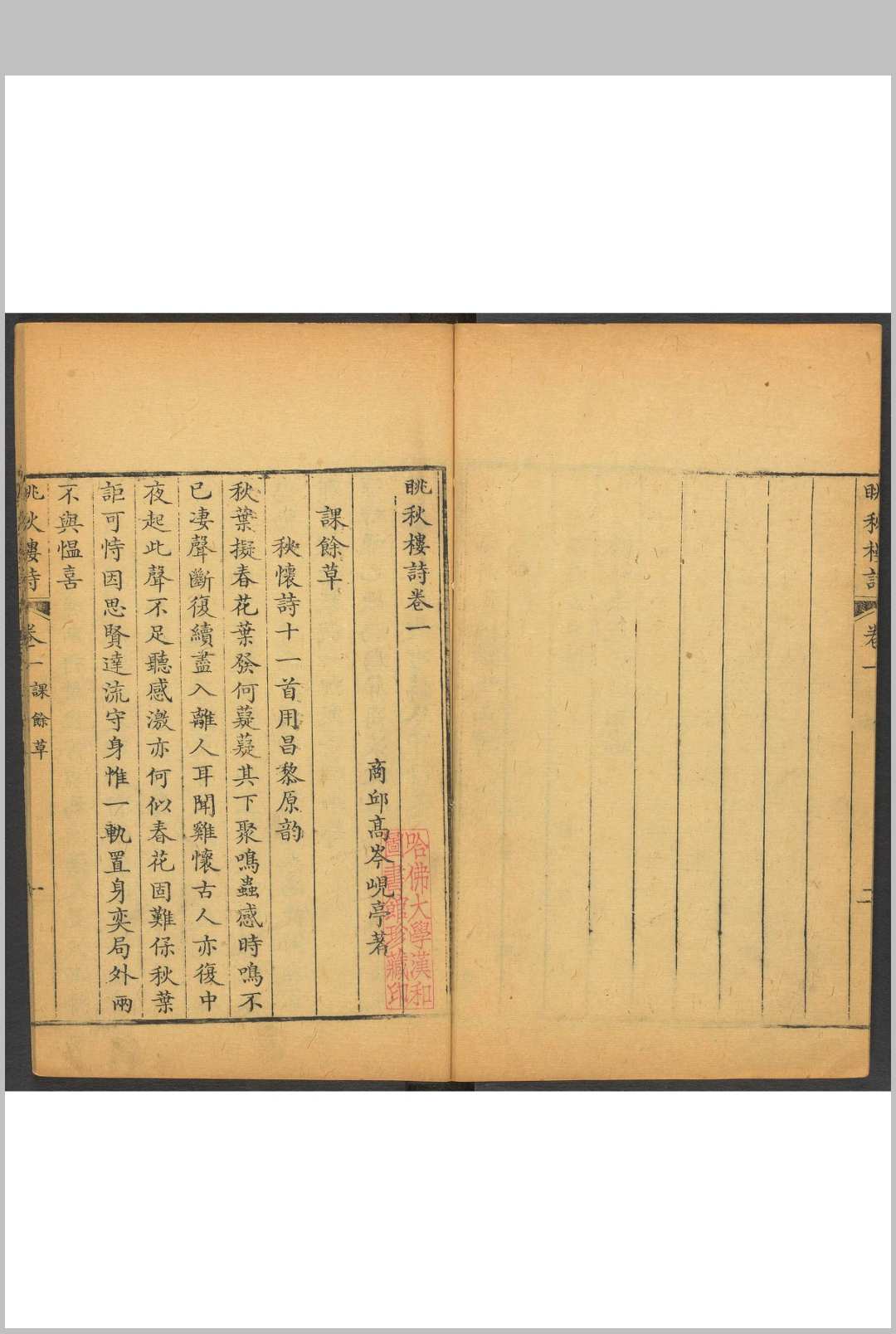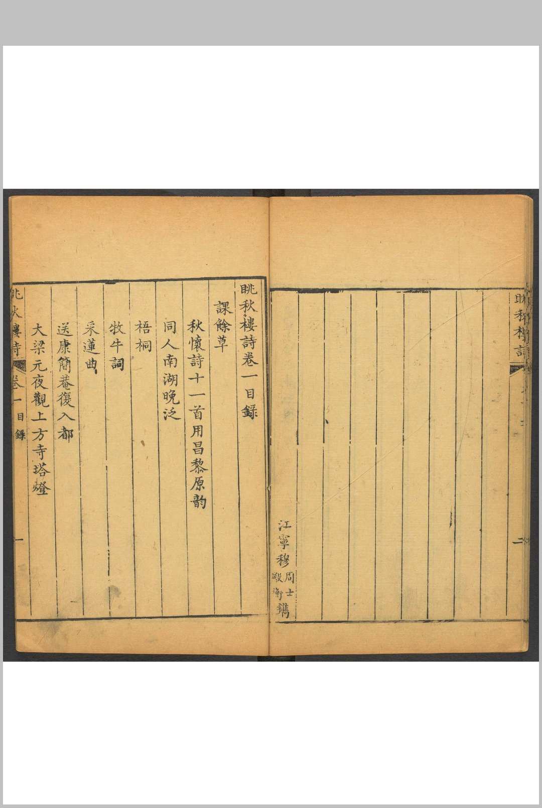 眺秋楼诗 八卷 高岑撰.十研居, 清乾隆22年