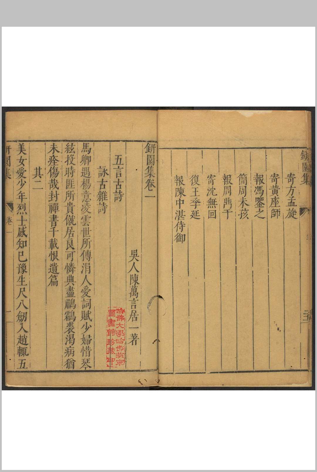 銒园集 14卷 陈万言撰 王起隆, 明天启间